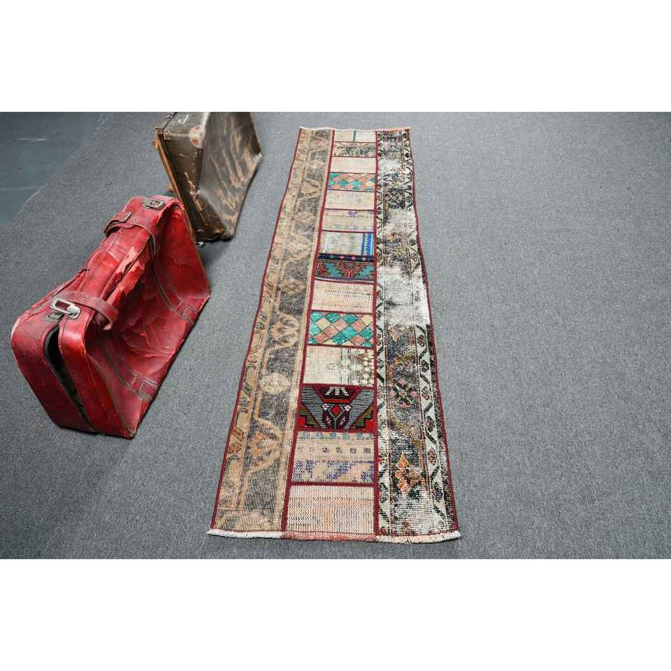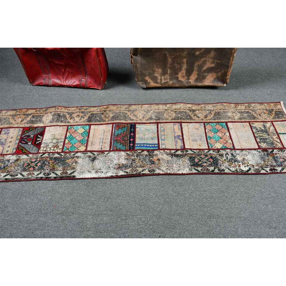 Alfombra Vintage Estilo Runner de 2x7.2 pies (61x219 cm), Alfombra Turca de Lana Ikat Roja