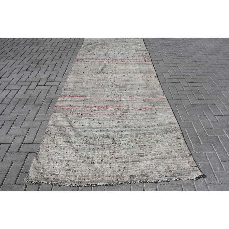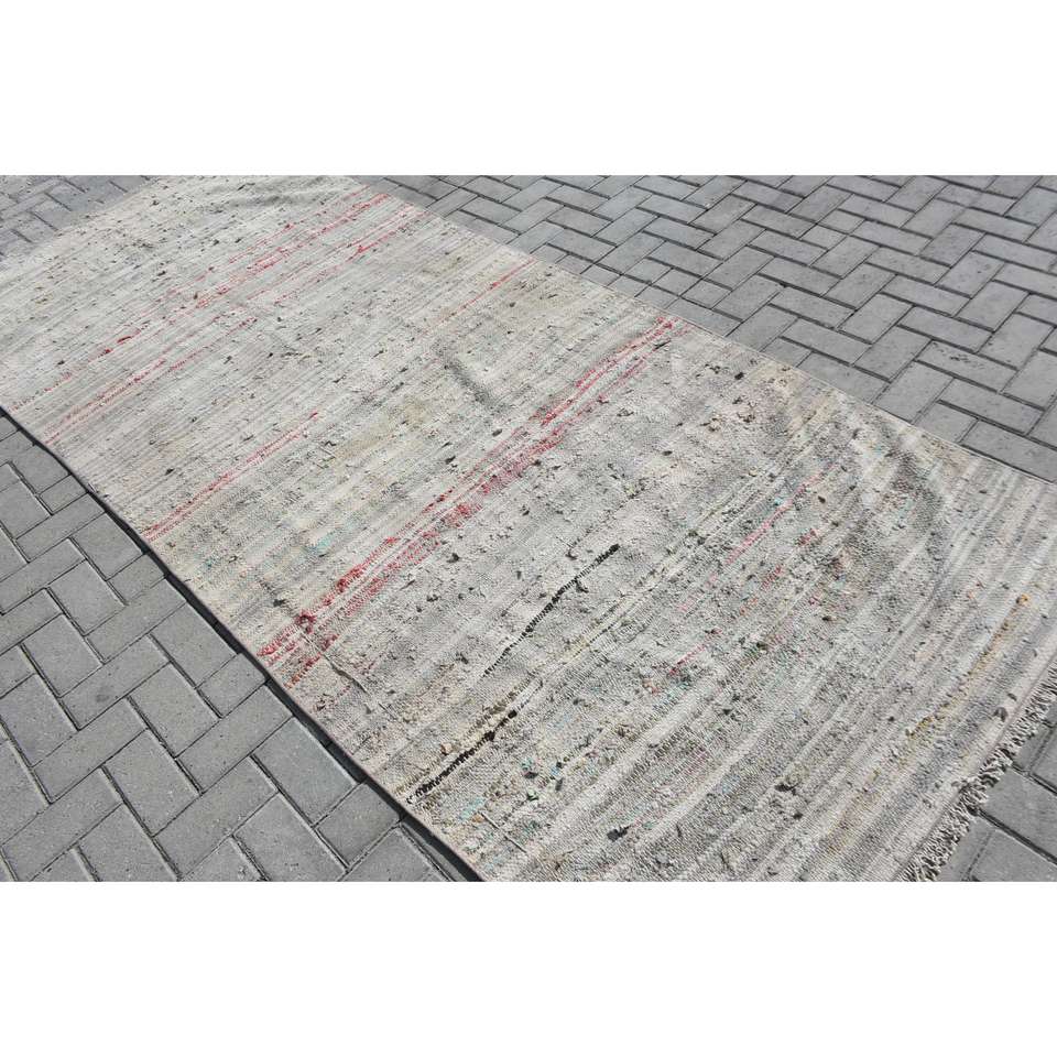 Alfombra vintage estilo Kilim de 4.2x10.8 pies (127x328 cm), color gris con motivos de plantas y árboles, alfombra turca.