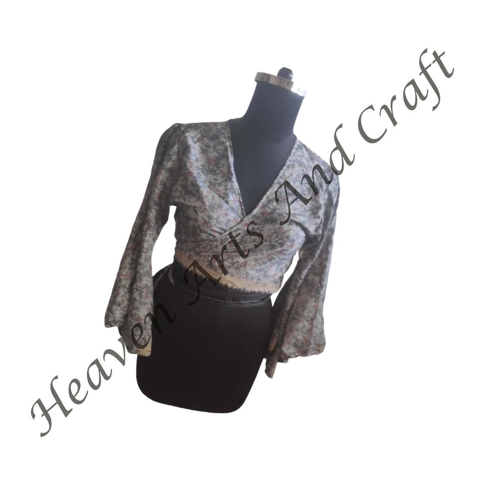Número de Modelo:Recycle Sari Silk Tie Tops Bell Sleeves