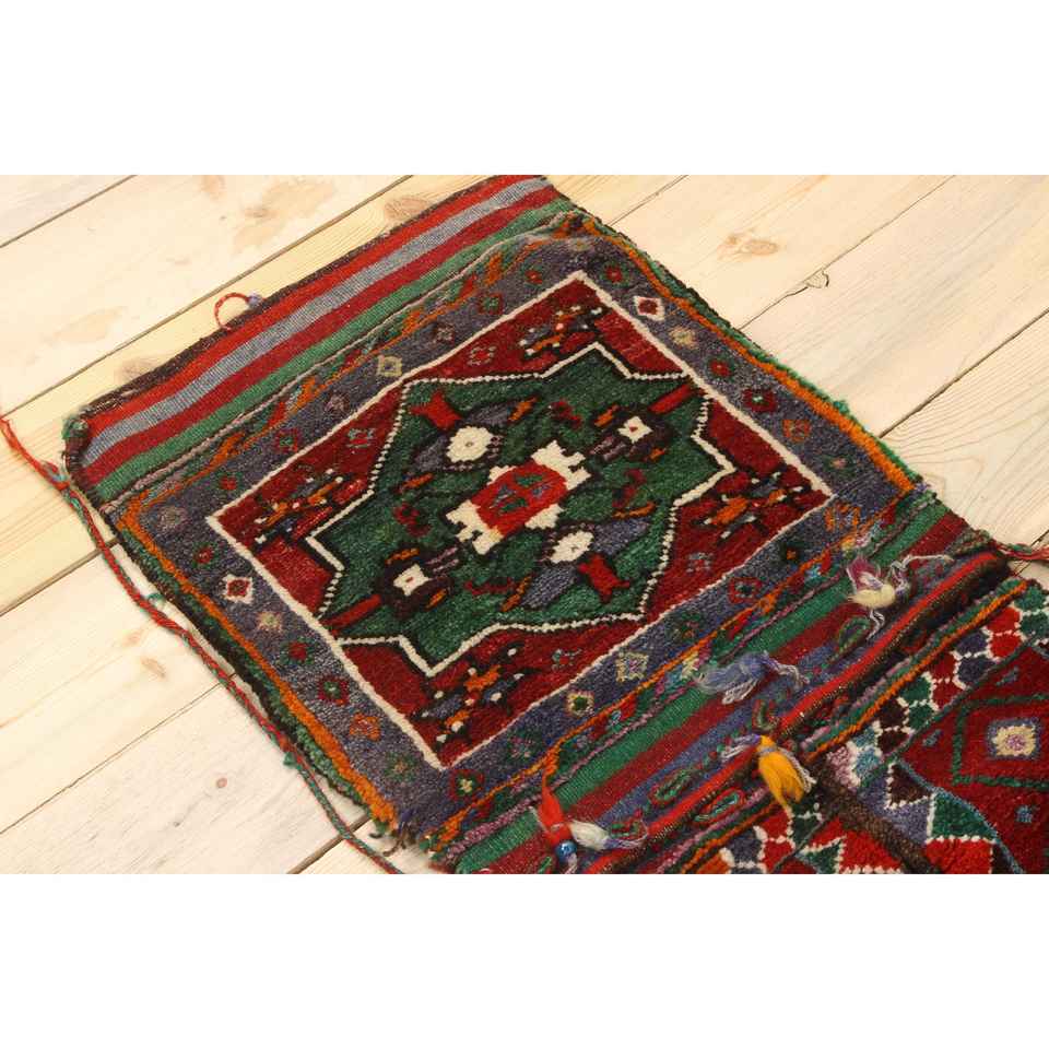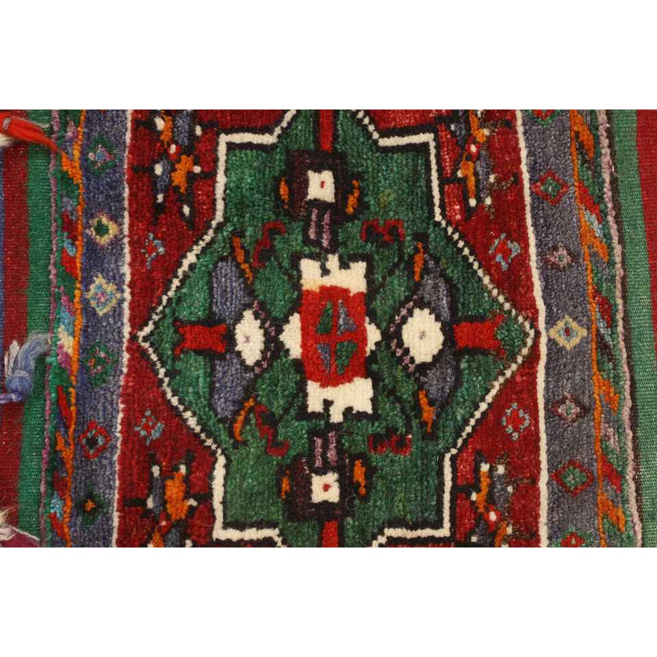 Alfombra pequeña vintage de 1.5x4.5 pies, alfombra turca de lana con lunares rojos