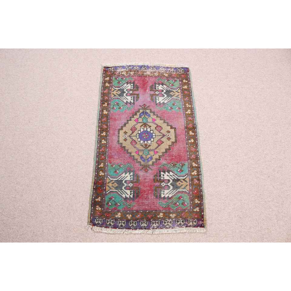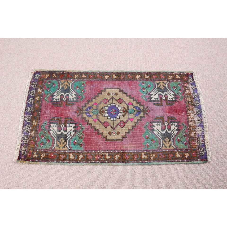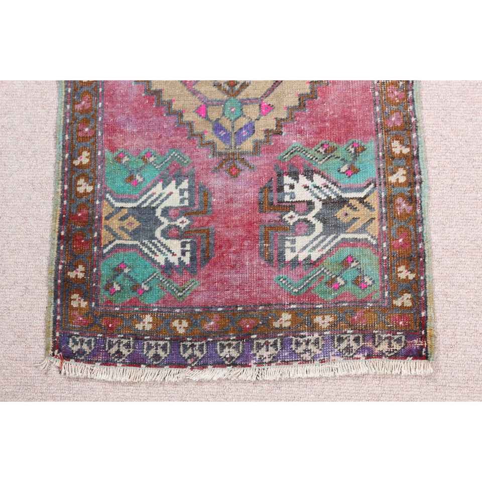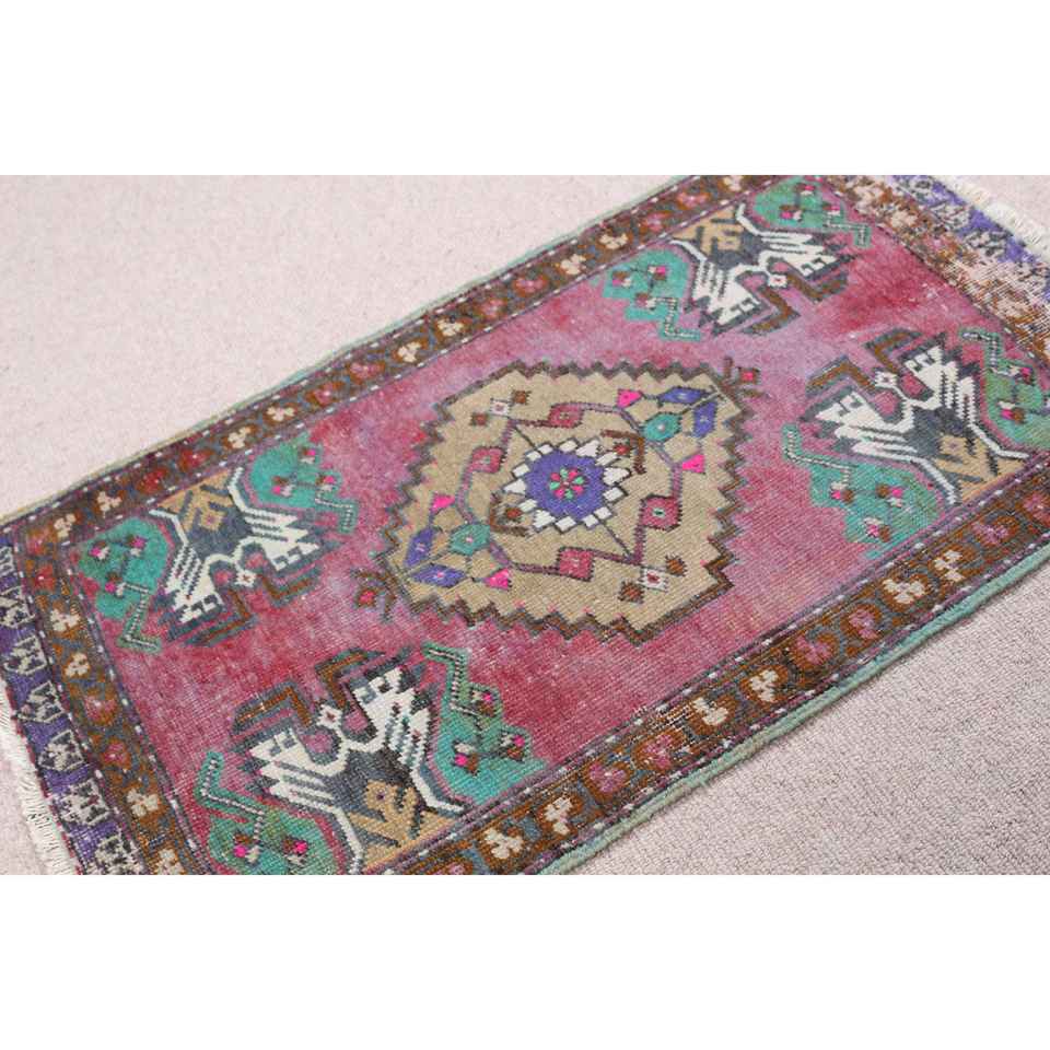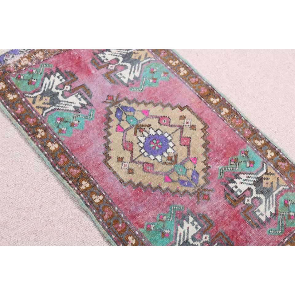 Alfombra Pequeña Vintage de 1.6x2.9 pies (49x87 cm), Alfombra Oriental de Lana Roja Turca