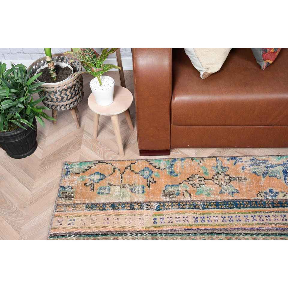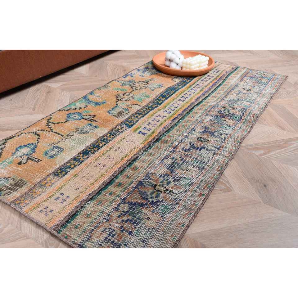 Alfombra Pequeña Vintage, Alfombra Turca de 2.1x4.1 pies, Alfombra de Lana Azul