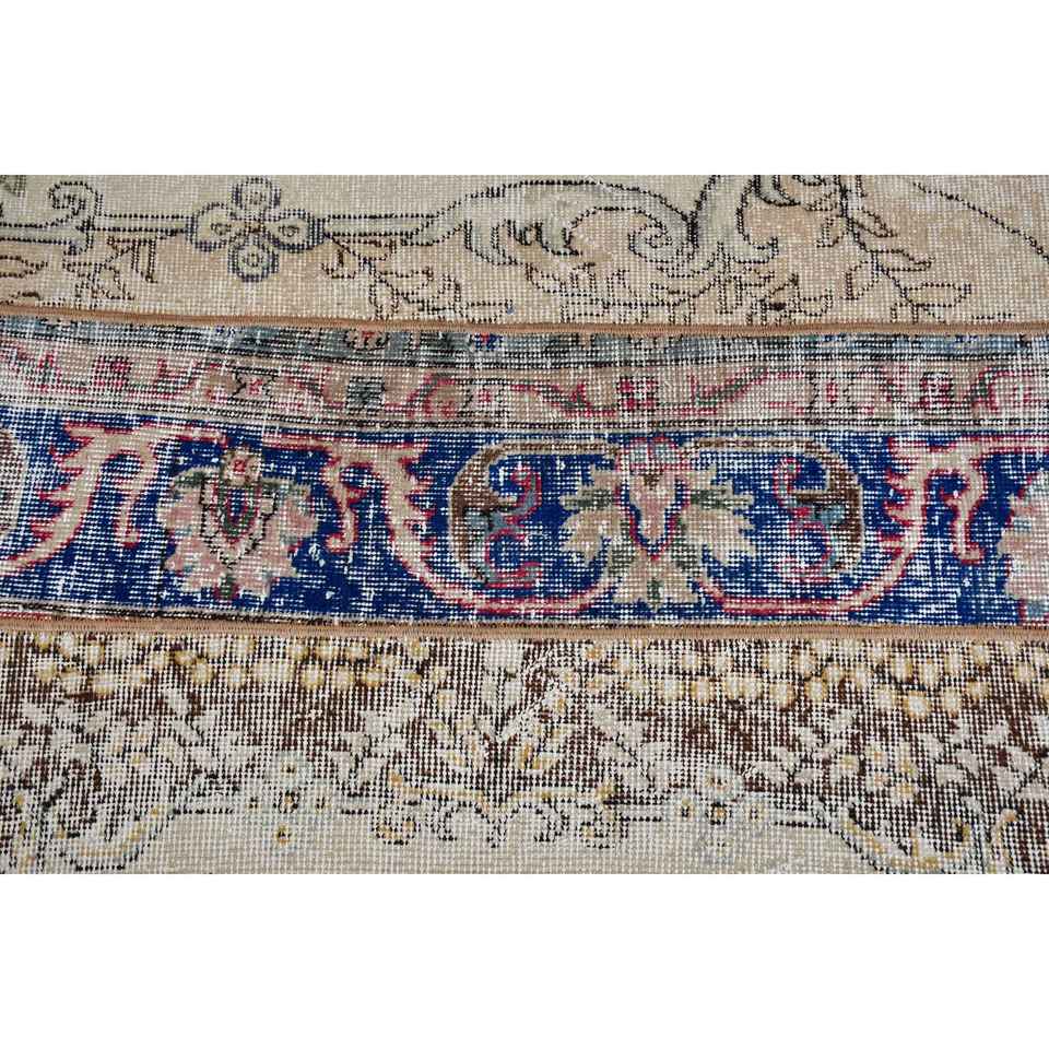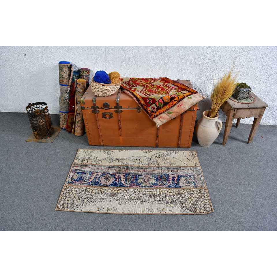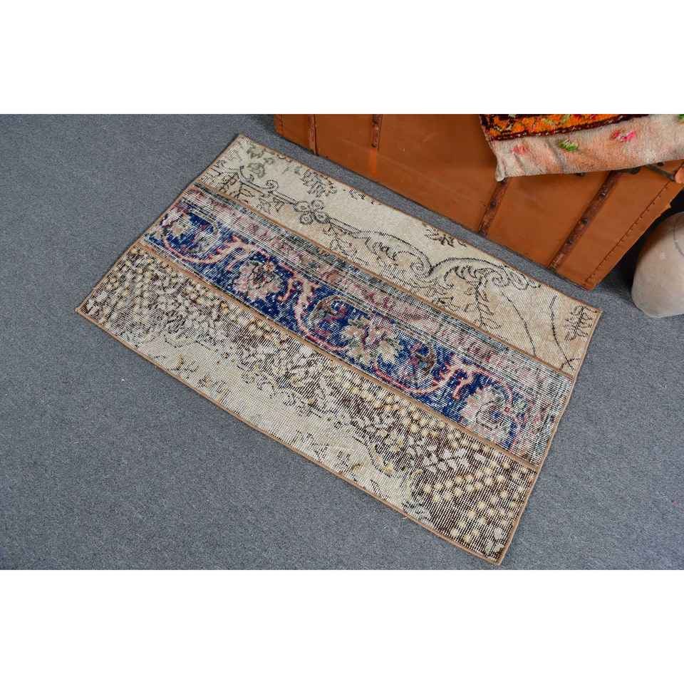 Alfombra Pequeña Vintage de 2.3x3.6 pies, Alfombra Turca de Lana con Diseño a Cuadros Azules