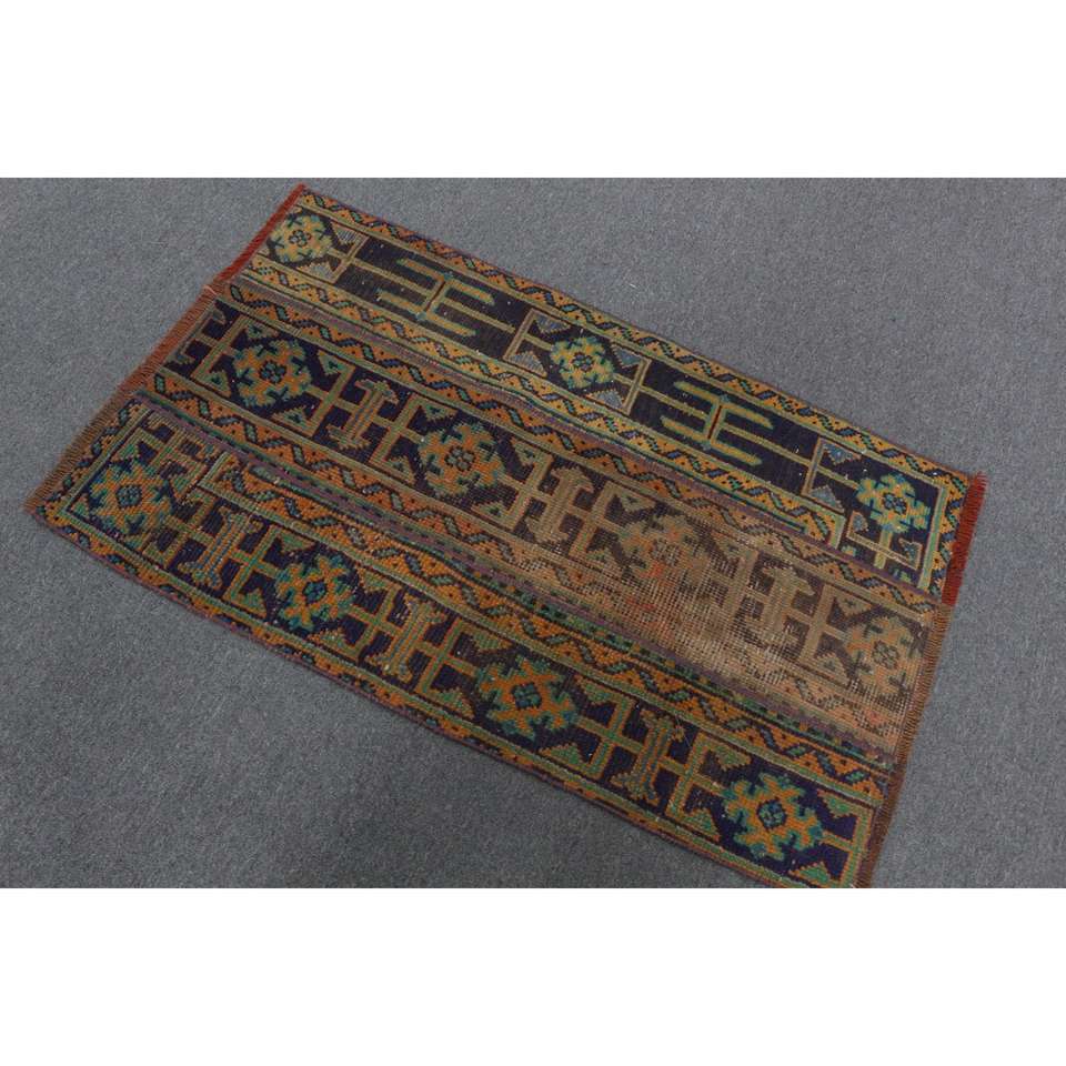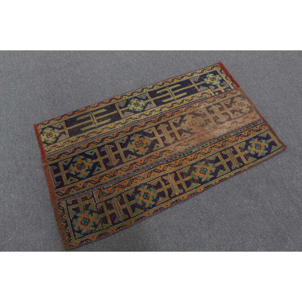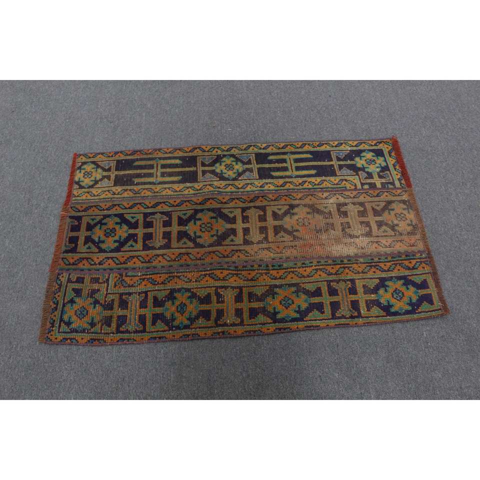 Alfombra Pequeña Vintage, Alfombra Turca de 2.4x4 pies, Alfombra de Lana Azul