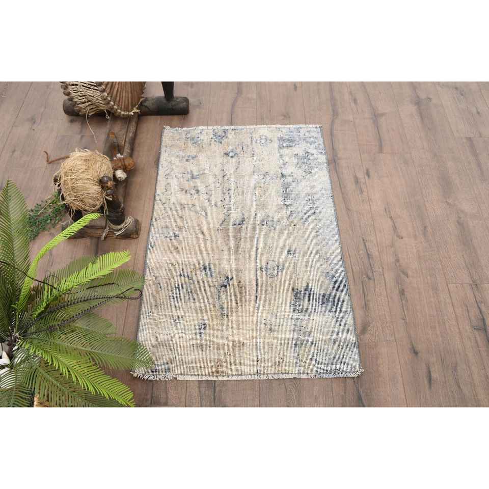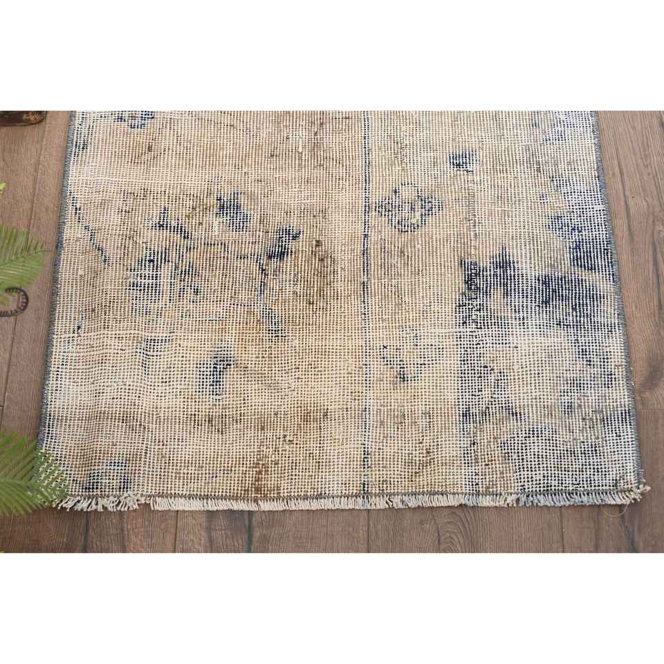 Alfombra Pequeña Vintage de 2x3.2 pies (61x98 cm), Alfombra Turca Azul Sólida