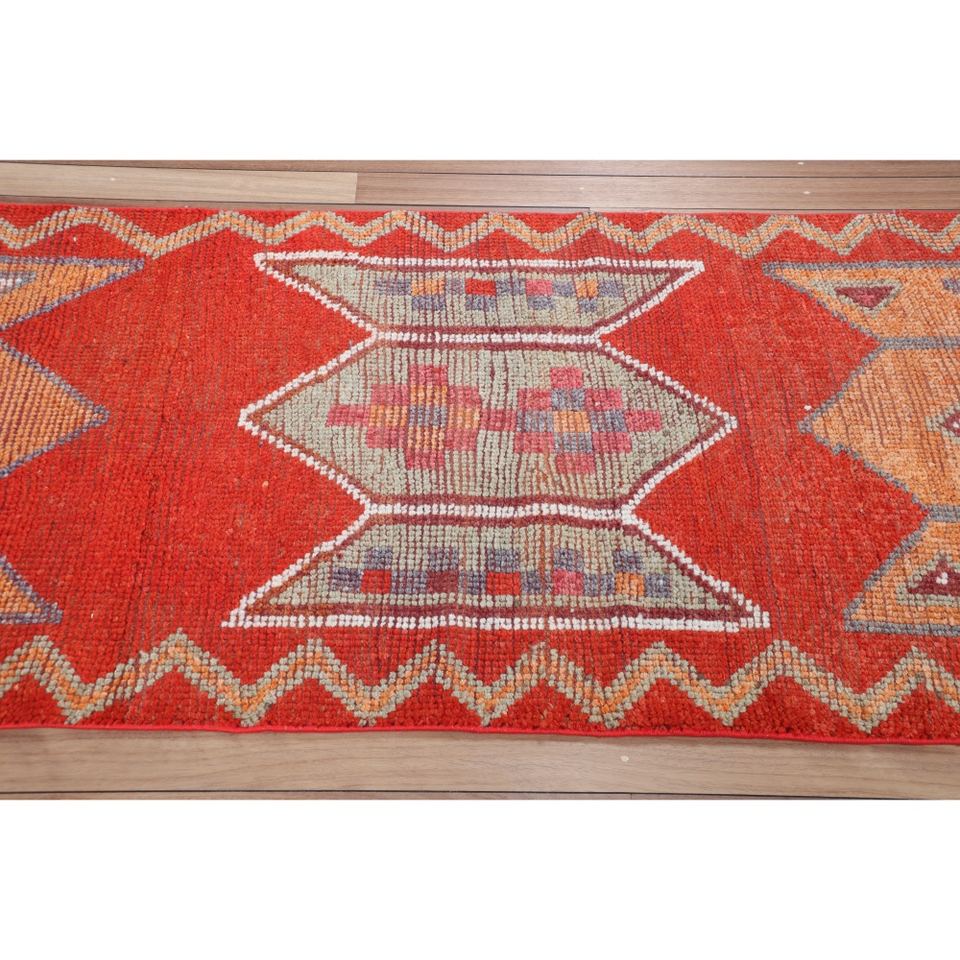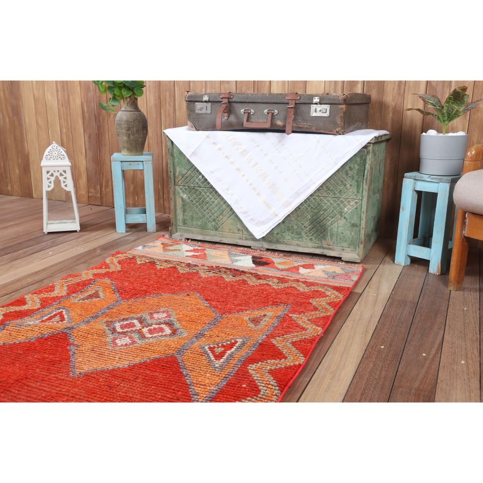 Alfombra Pequeña Vintage, Alfombra Turca de 3.3x10.7 pies, Alfombra Geométrica Naranja