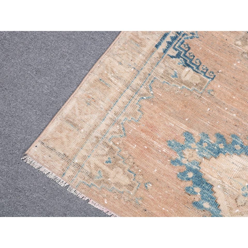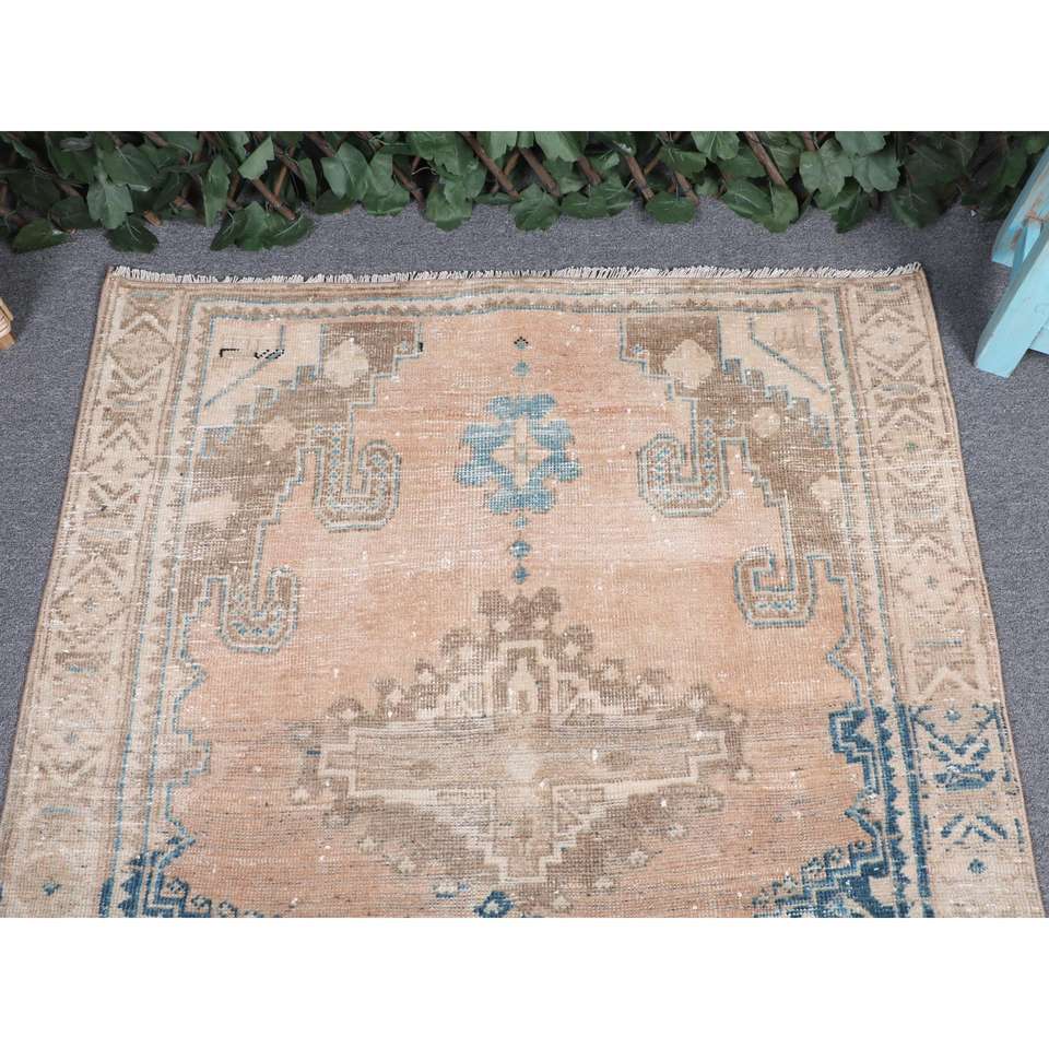 Alfombra Marroquí Pequeña Vintage de 3.3x3.9 pies, Azul y Marrón, con Parches de Lana y Respaldo de Látex, Ecológica para el Hogar