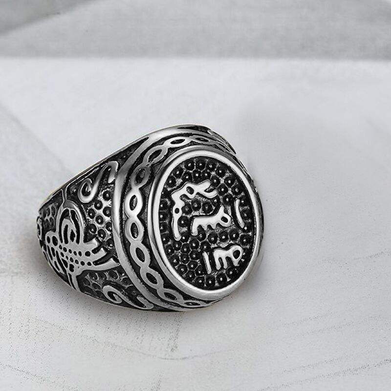 Anillos de mensajero del Corán de acero inoxidable Vintage, palabras musulmanas religiosas islámicas Halal, Dios árabe, fábrica de joyería para hombres al por mayor