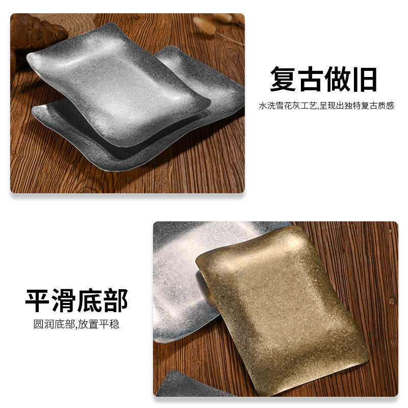 Plato Rectangular Vintage de Acero Inoxidable, Dorado, Forma Irregular, Bandeja para Postres y Aperitivos, Vajilla Resistente para Restaurantes y Barbacoas