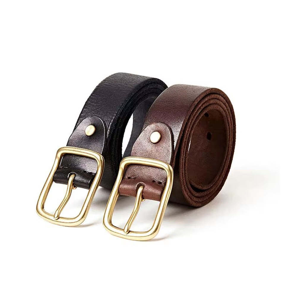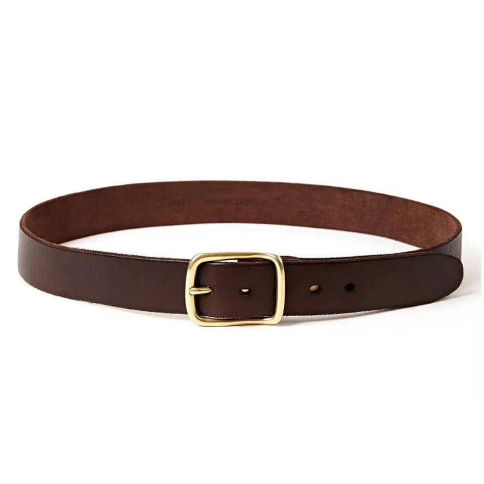 Cinturón de Cuero Genuino Vintage Resistente con Hebilla, Cinturón de Cuero de Grano Completo para Hombre