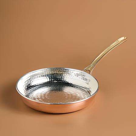 Sartén de Cobre Estilo Vintage con Mango de Latón, Sartén Artesanal Martillada para Cocina Profesional, Decoración para el Hogar y Hoteles