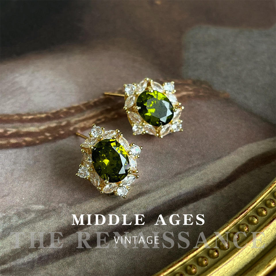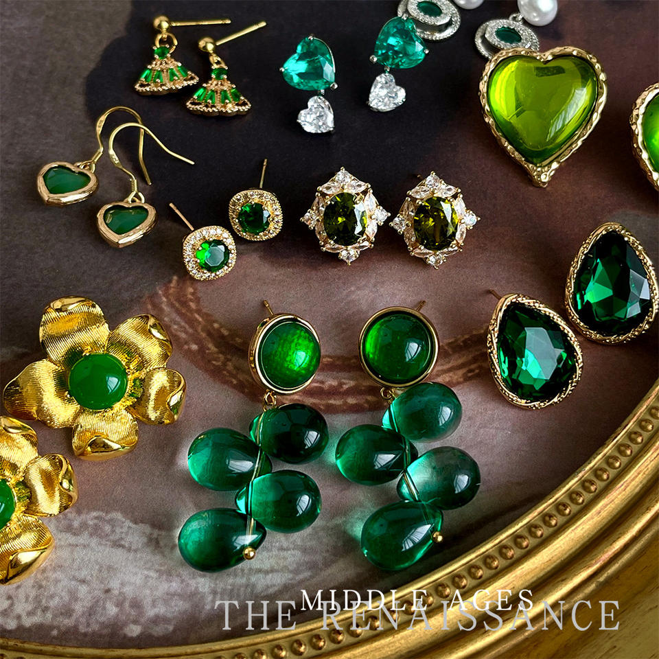 Pendientes de Alta Gama de Aleación de Cobre con Circonita y Flores Exageradas de Estilo Vintage de la Colección Esmeralda