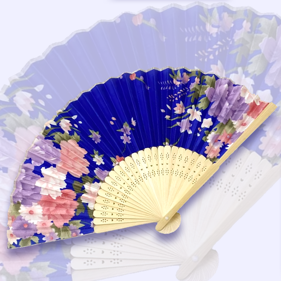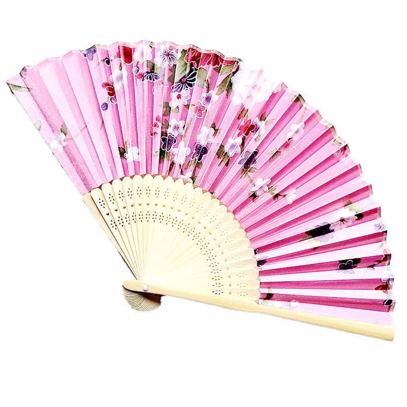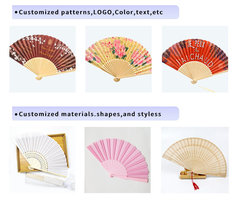 Abanico de mano con forma de flor de estilo vintage, material de bambú con logotipo personalizado y patrón para señora