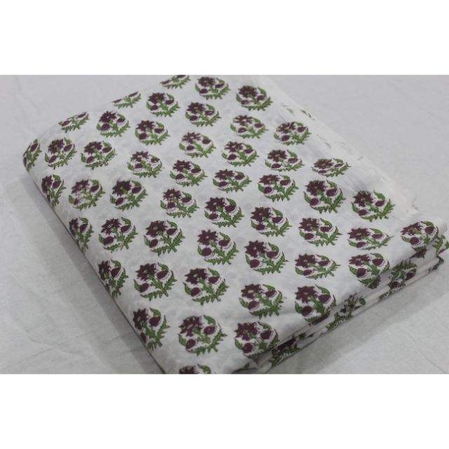 Tela de Algodón Estampada a Mano Estilo Vintage con Diseño Floral Moderno de Jaipur, Material Ligero para Bolsos, Cortinas y Vestidos