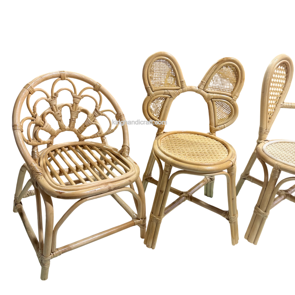 Silla Infantil de Mimbre Hecha a Mano de Estilo Vintage para Decoración de Fiestas de Cumpleaños, Asiento Infantil de Mimbre Natural