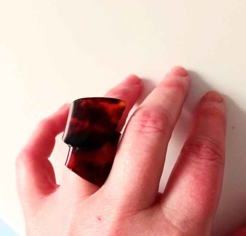 Anillo hecho a mano de estilo vintage, tono de carey, celuloide, Mod, estilo bohemio, joyería llamativa, diseño Retro de Color marrón