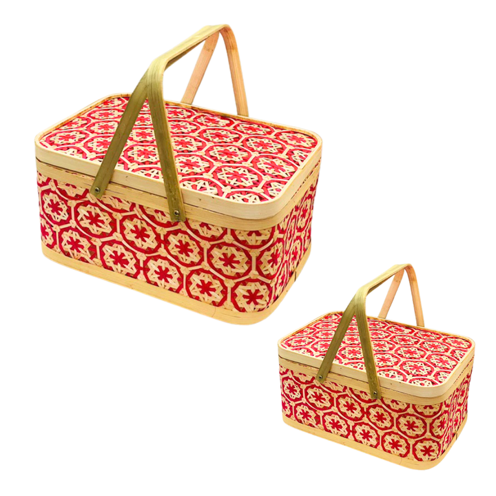 Cestas de Almacenamiento Rectangulares de Bambú Tejidas a Mano de Estilo Vintage con Diseños Florales, Almacenamiento Multiusos, Artesanía Vietnamita
