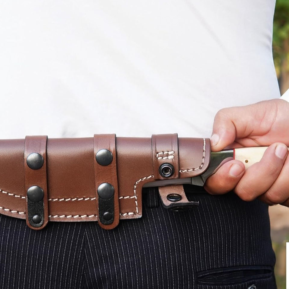 Funda de cuchillo de cuero de estilo vintage con bucle para supervivencia al aire libre Camping Bushcraft y funda de cuchillo de hoja fija EDC