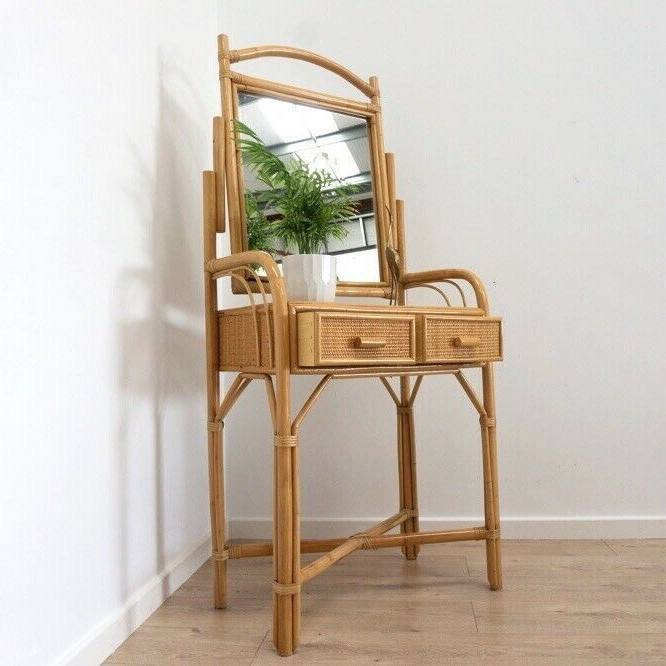 Tocador de madera de ratán natural de estilo Vintage, nuevo diseño con espejo, precio barato a granel, hecho en Vietnam para exportación