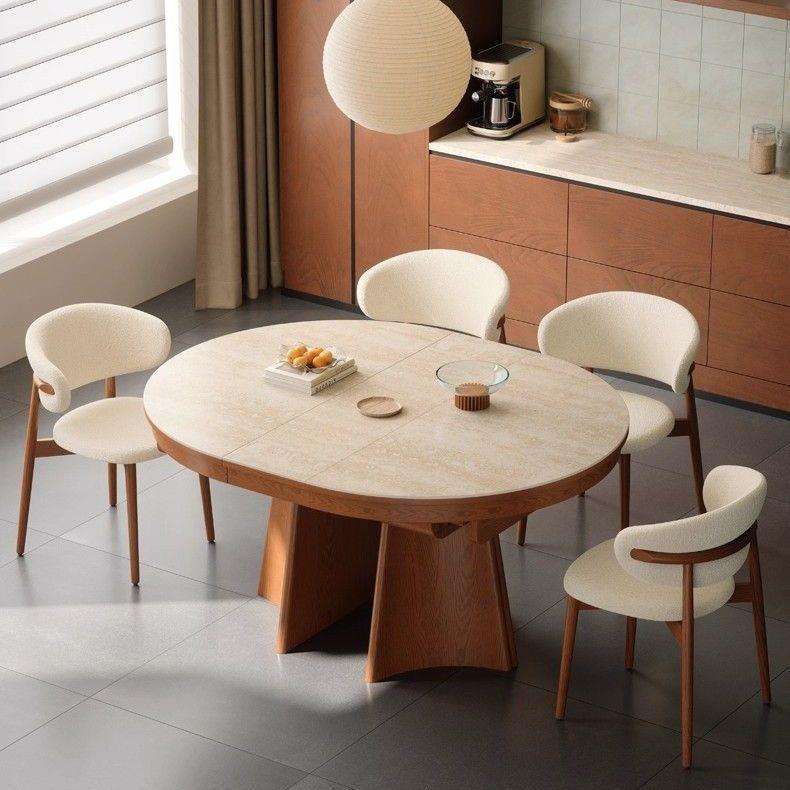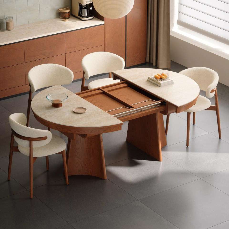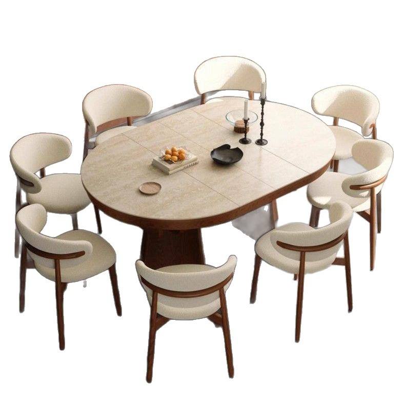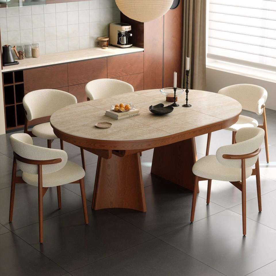Mesa de Comedor Extensible Ovalada de Estilo Vintage con Tapa de Losa de Piedra para Espacios de Comedor Modernos en Apartamentos Pequeños