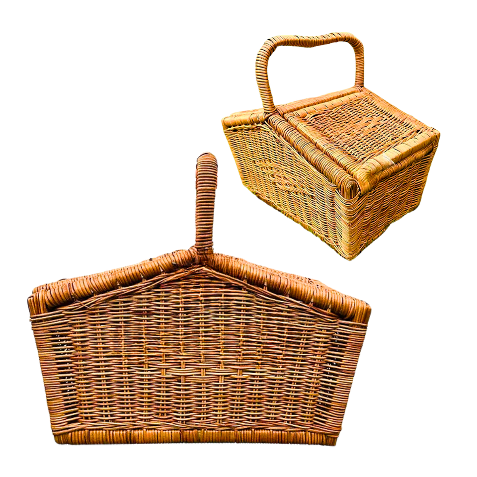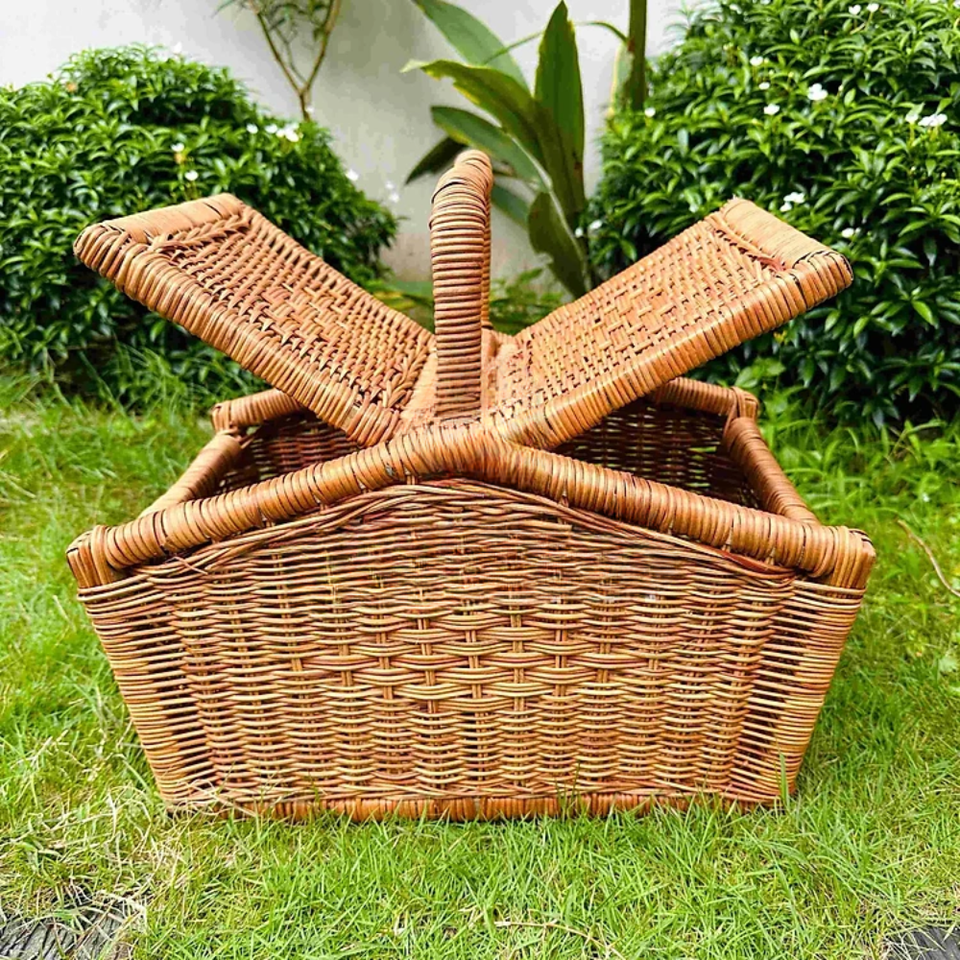 CESTA DE RATÁN DE ESTILO Vintage CESTA DE PICNIC de Vietnam Cesta de cosecha de mimbre grande Marco de madera ligero y tapa