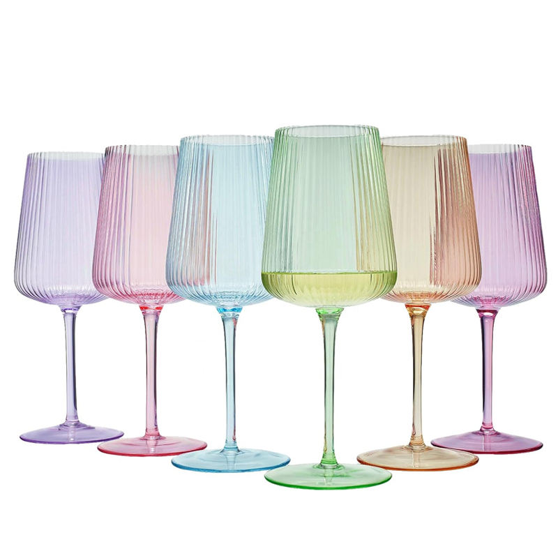 Juego de 6 Copas de Vino de Estilo Vintage con Diseño Acanalado, Copas de Colores para Degustación de Vinos, Regalo para Bodas, Aniversarios, Navidad