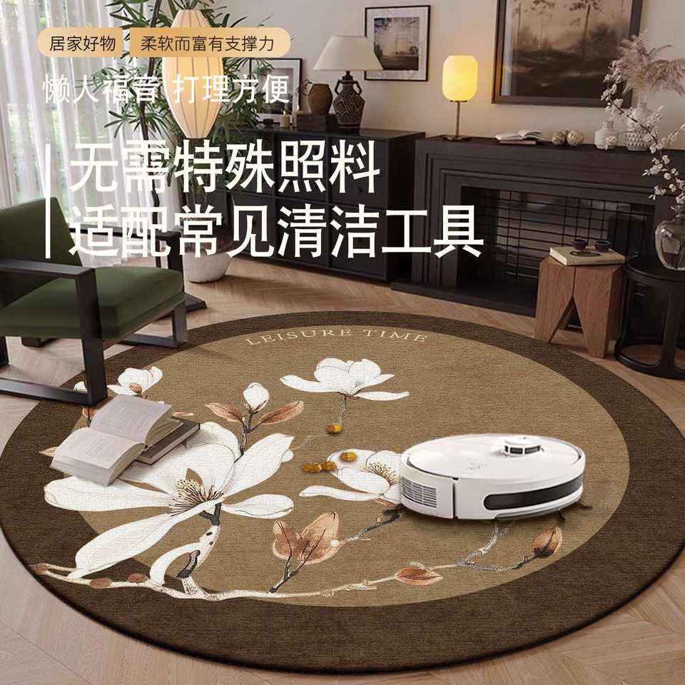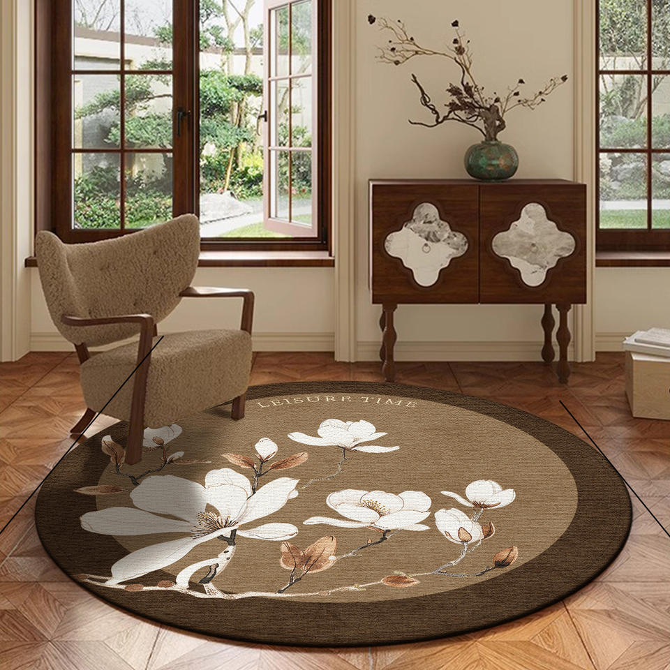 Alfombra Redonda de Estilo Vintage con Patrón Floral, Fibra de Poliéster, Alfombra para Sala de Estar o Dormitorio, Diseño Nórdico, Resistente al Agua y a las Manchas