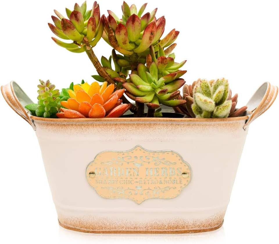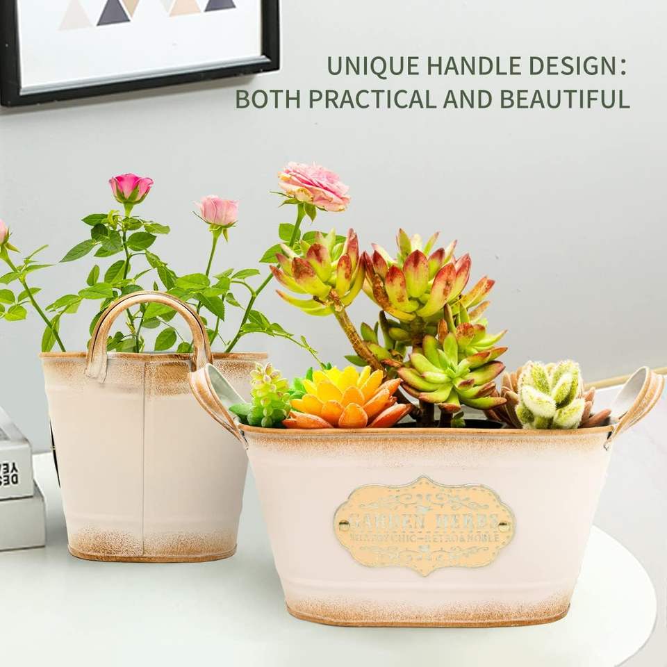 Maceta pequeña de Metal de estilo Vintage para interior/exterior, maceta de hierro con asas para jardín doméstico o cubo de Metal decorativo