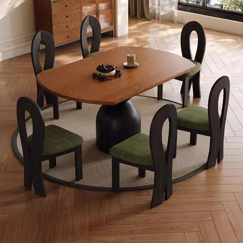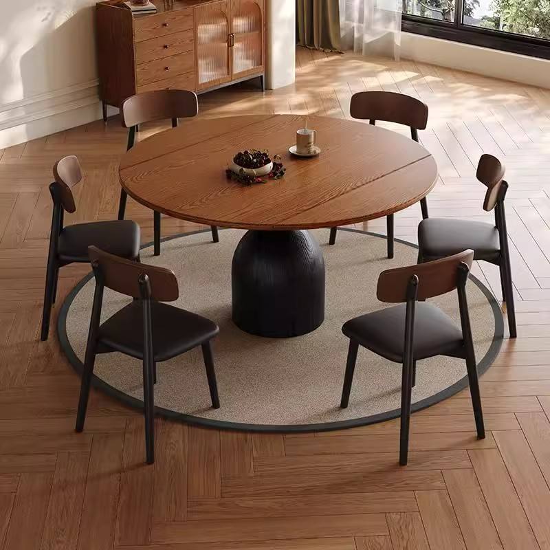 Mesa de comedor redonda extensible de madera maciza estilo vintage, juego de 6 piezas para comedor