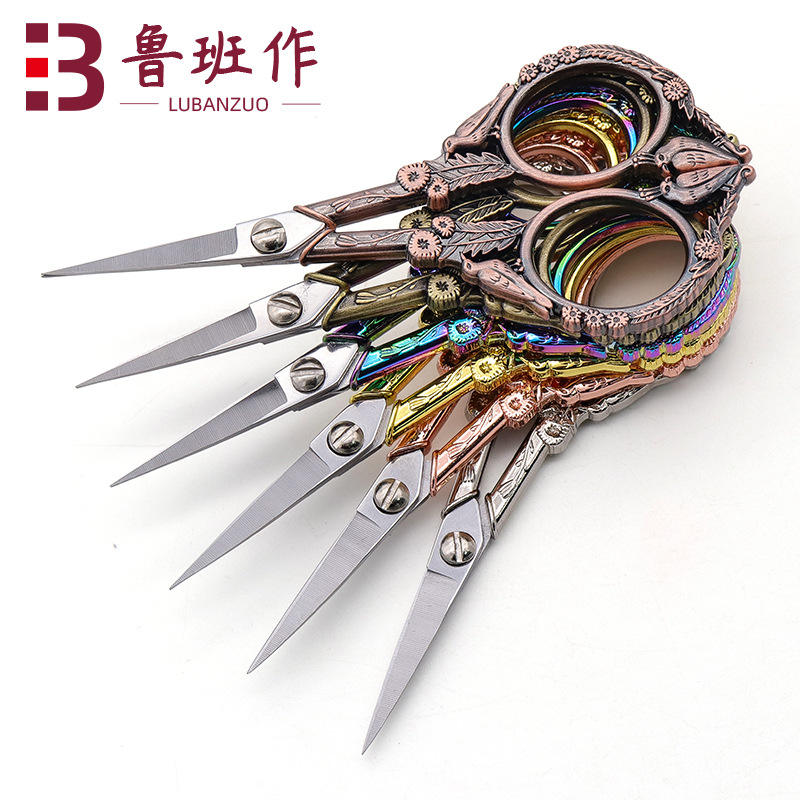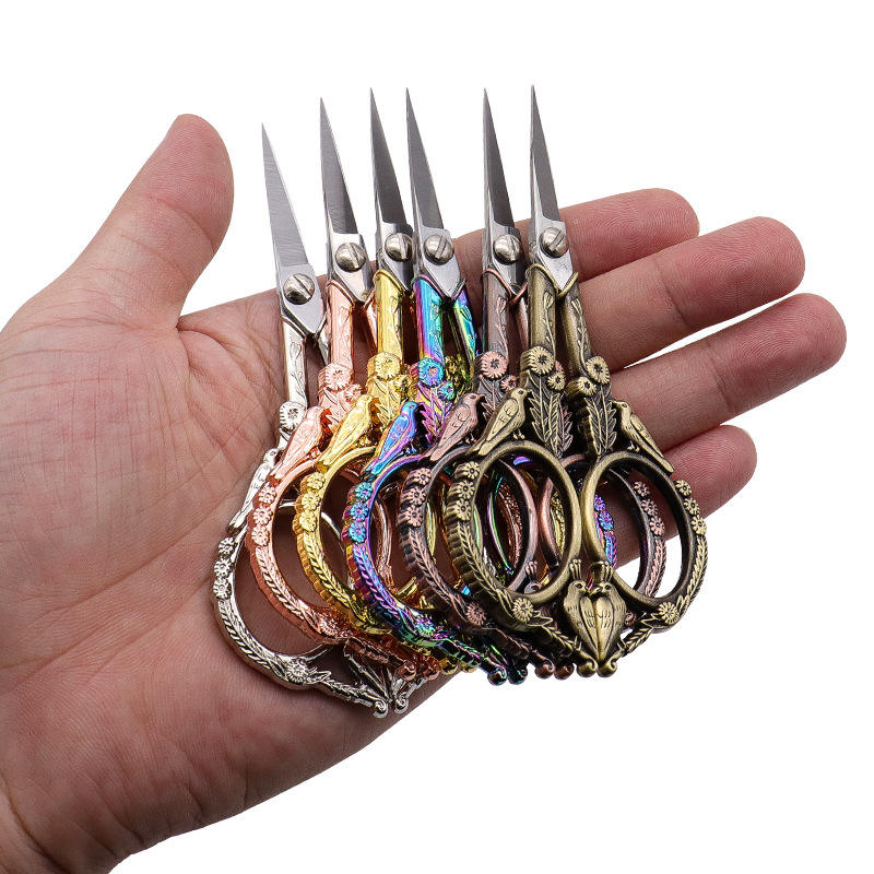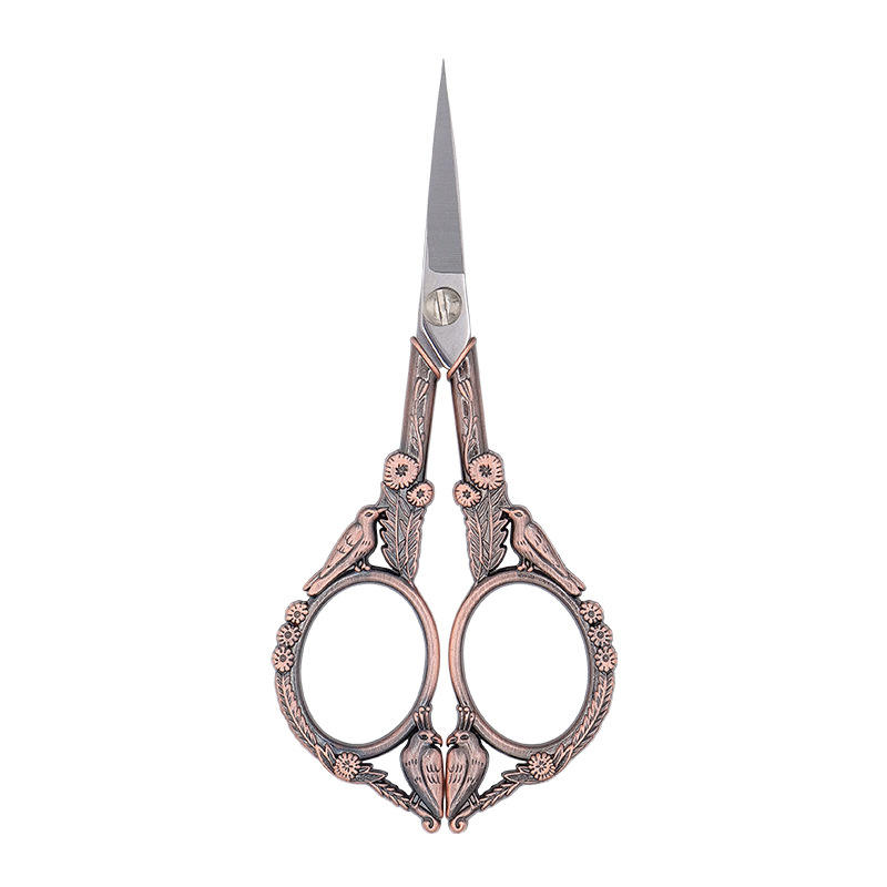 Tijeras Vintage para Té de Acero Inoxidable, Cortadores de Hilo para Bordado con Tema de Pájaros, Cabeza Redonda, Uso Doméstico, Chapado en Oro, Oro Rosa, Bronce