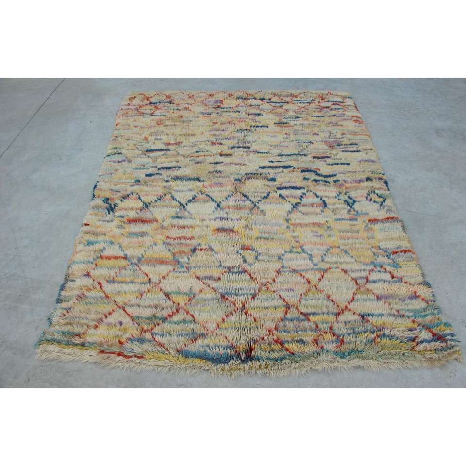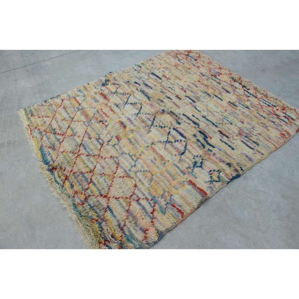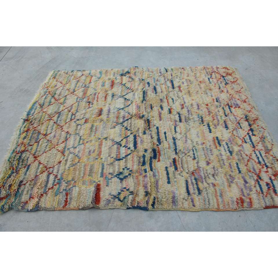 Alfombra Turca Vintage de 5.2x6.46 pies, Alfombra Azul Abstracta de Lana