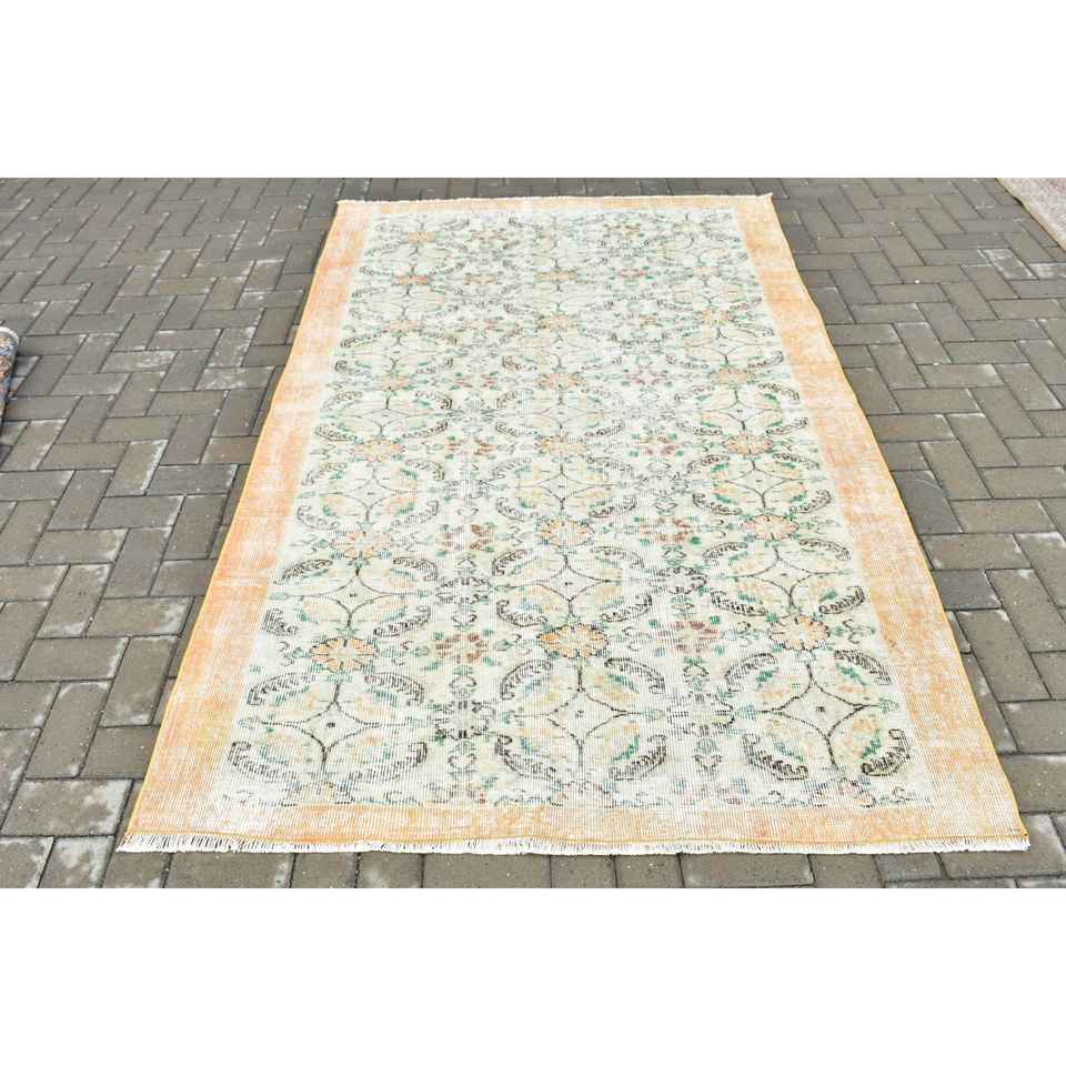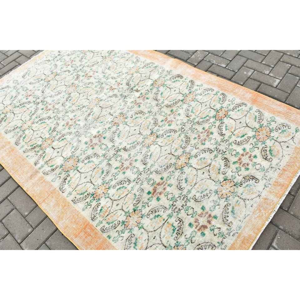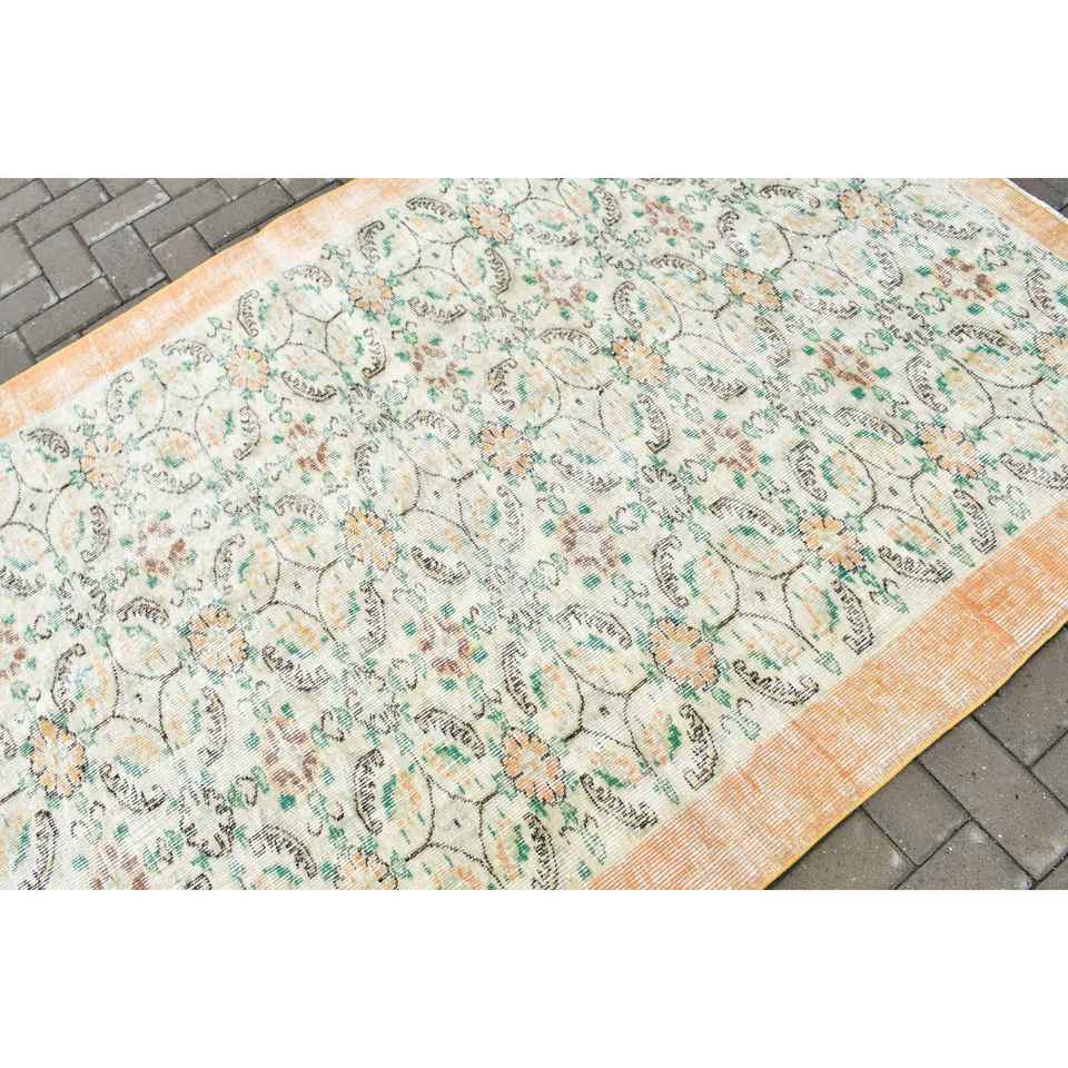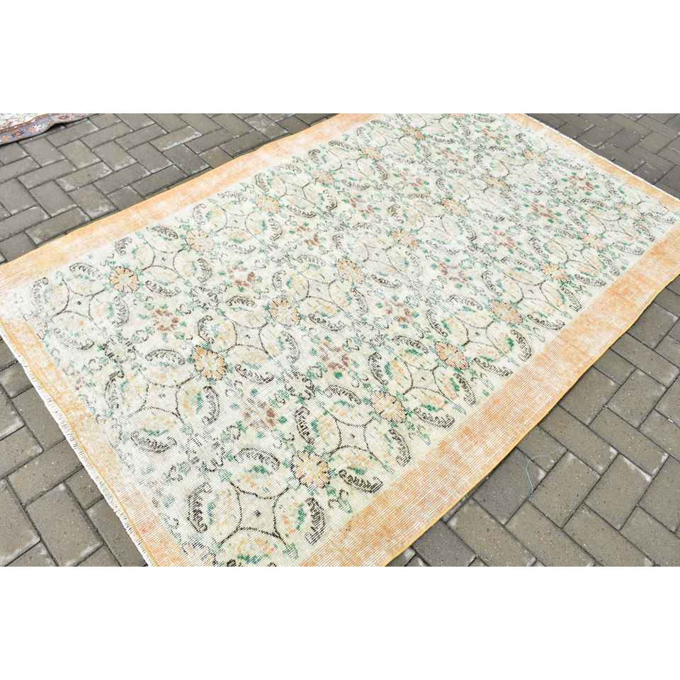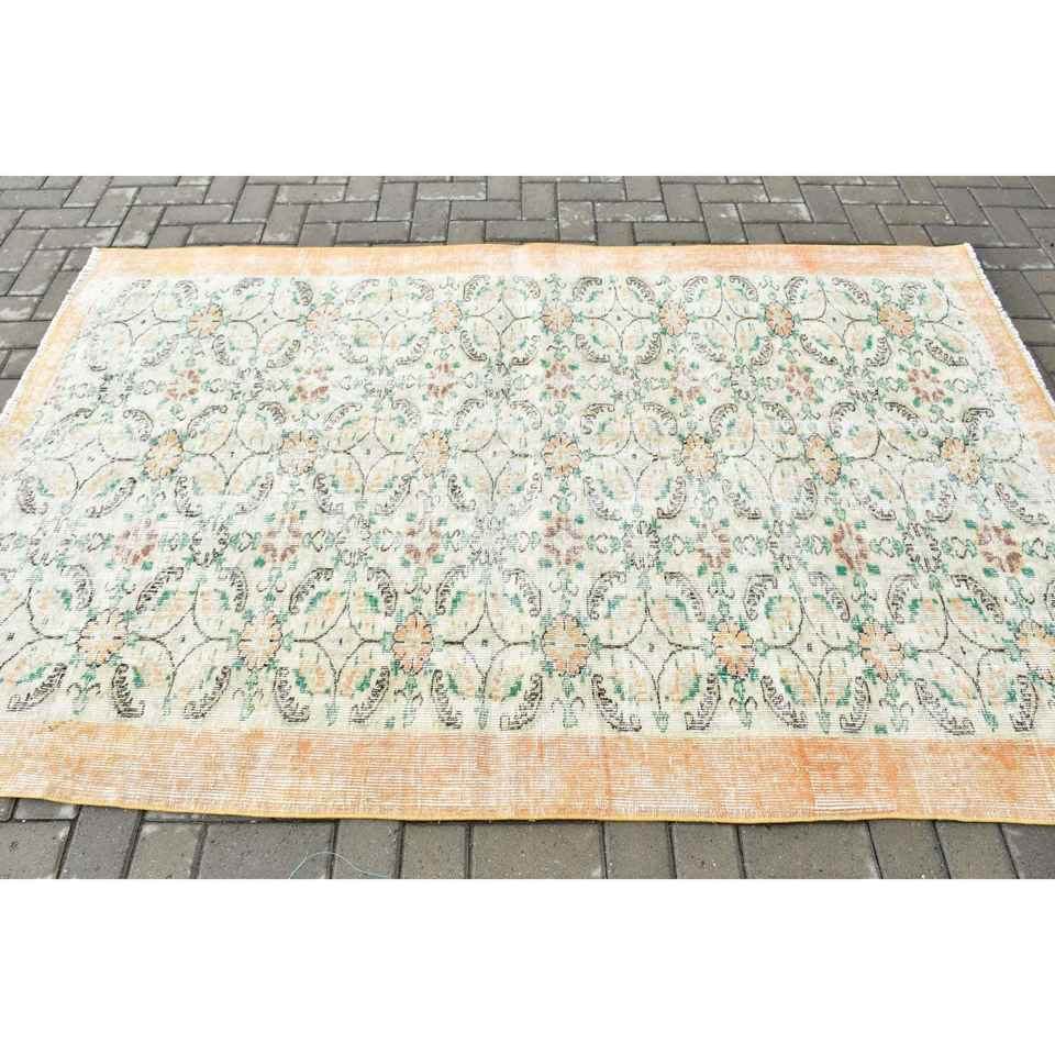 Alfombra turca vintage de 5x7.7 pies, alfombra con diseño de plantas y árboles en amarillo y verde.