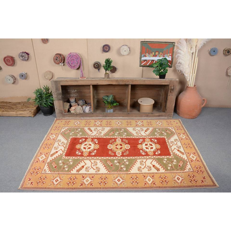 Alfombra Kilim turca Vintage de 4,4x6,4 pies, diseño de retazos rojo y verde, tejido plano de lana, respaldo de látex para pasillo rectangular para adolescentes de 10mm