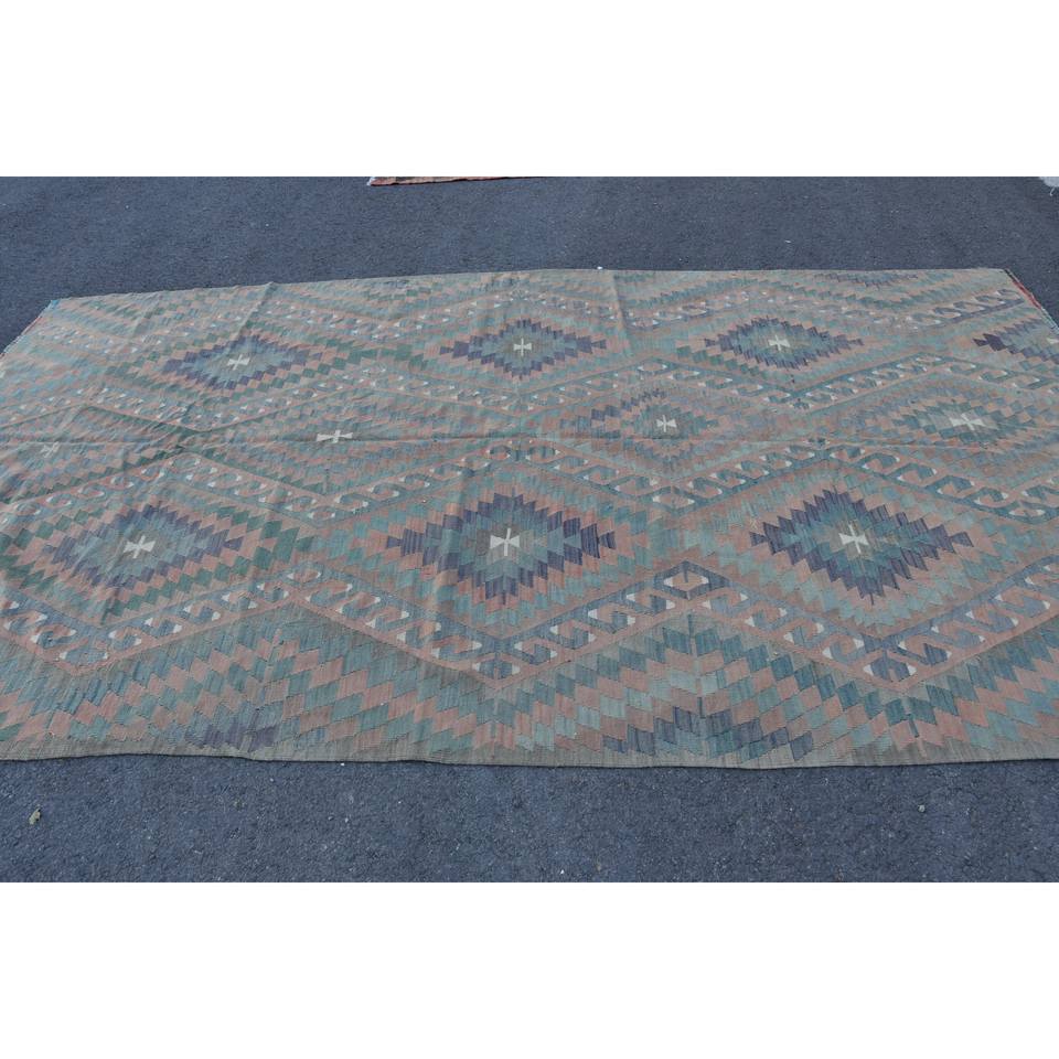 Alfombra Kilim turca Vintage de 6,3x11,2 pies, diseño de retales azul Beige, alfombra clásica de lana para sala de estar, respaldo de látex para uso doméstico