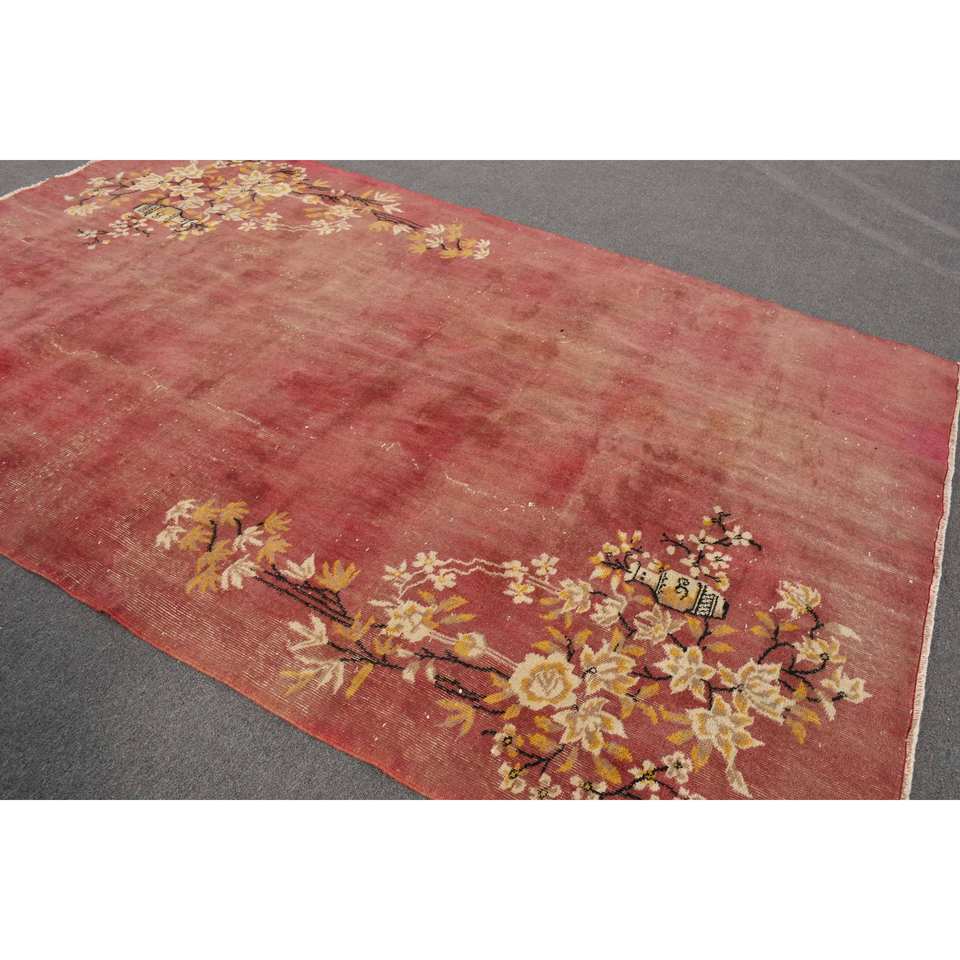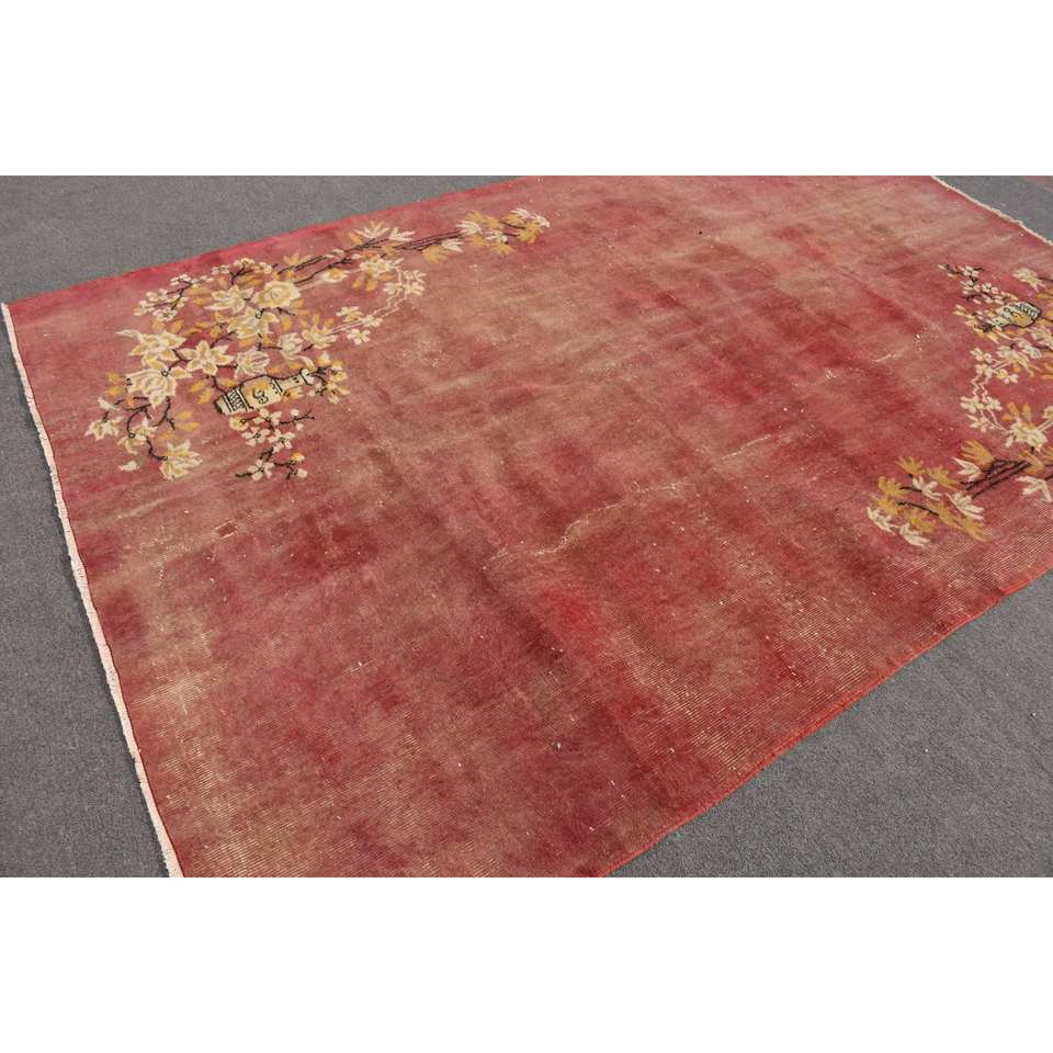 Alfombra de área grande turca Vintage de 6,4x9,6 pies, diseño de retales de estilo bohemio rojo, Material de lana, látex de 10mm para decoración de habitación de pasillo