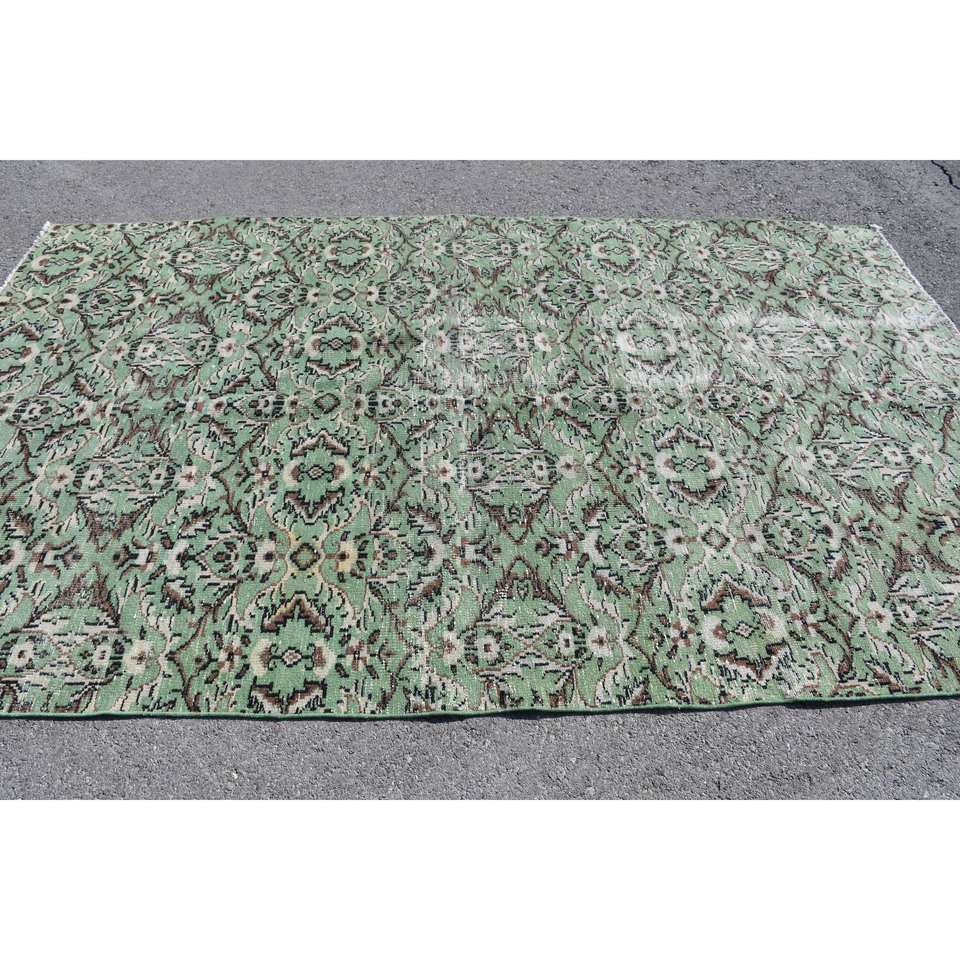 Alfombra de área grande turca Vintage clásica verde marrón 5,8x9,5 pies de látex de lana de retazos para adolescentes alfombra Rectangular para habitación de pasillo