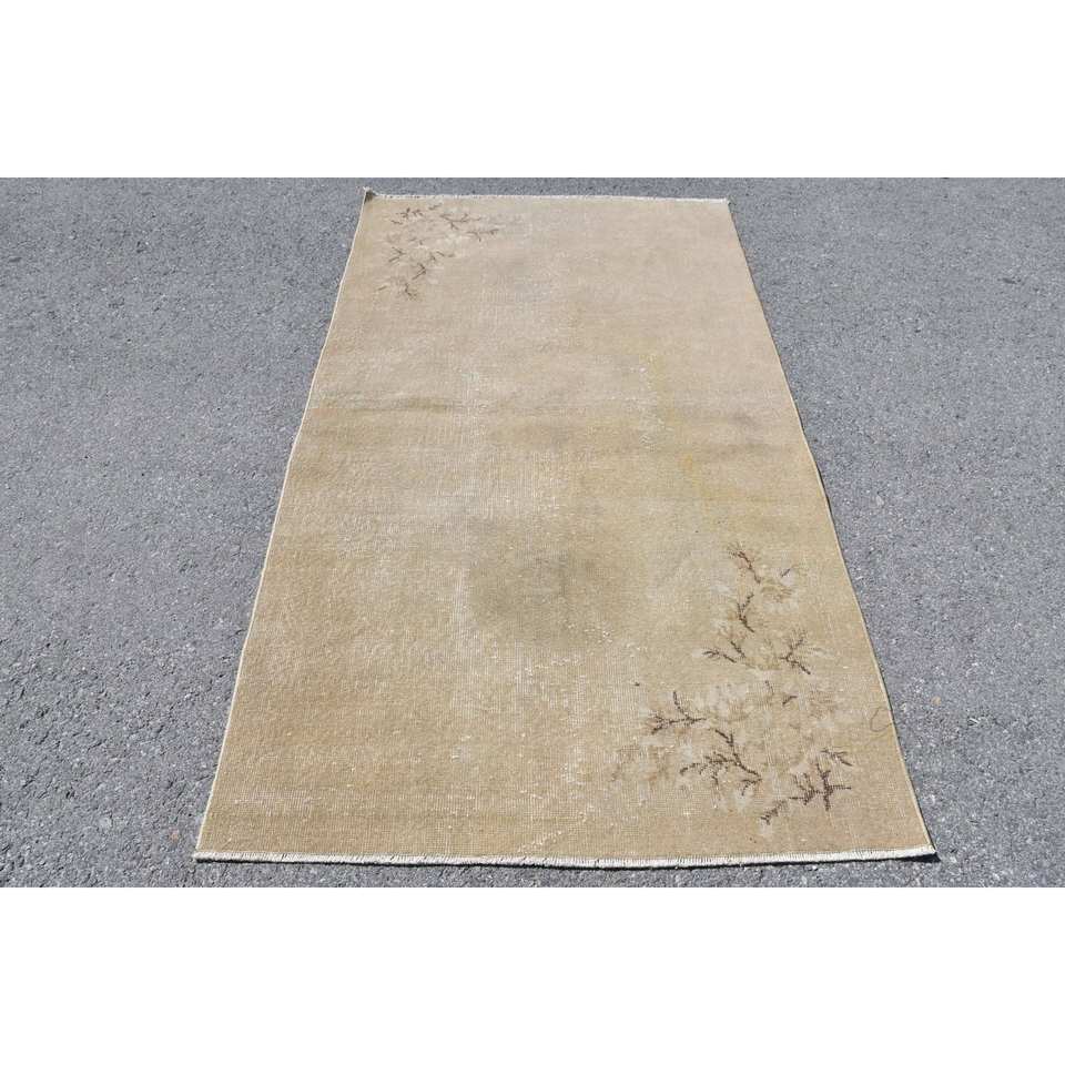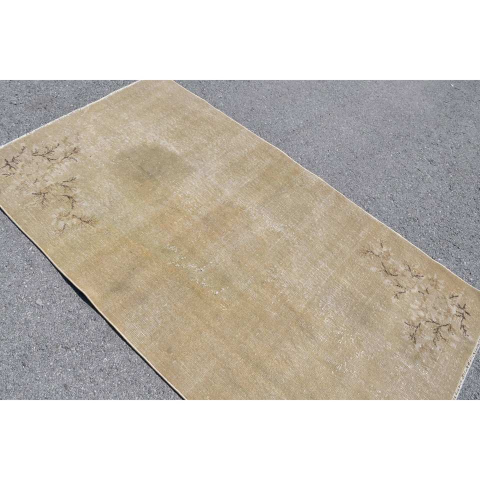 Alfombra de área grande turca Vintage clásica Beige con patrón de retazos abstractos 37X68 pies para dormitorio pasillo lana con respaldo de látex