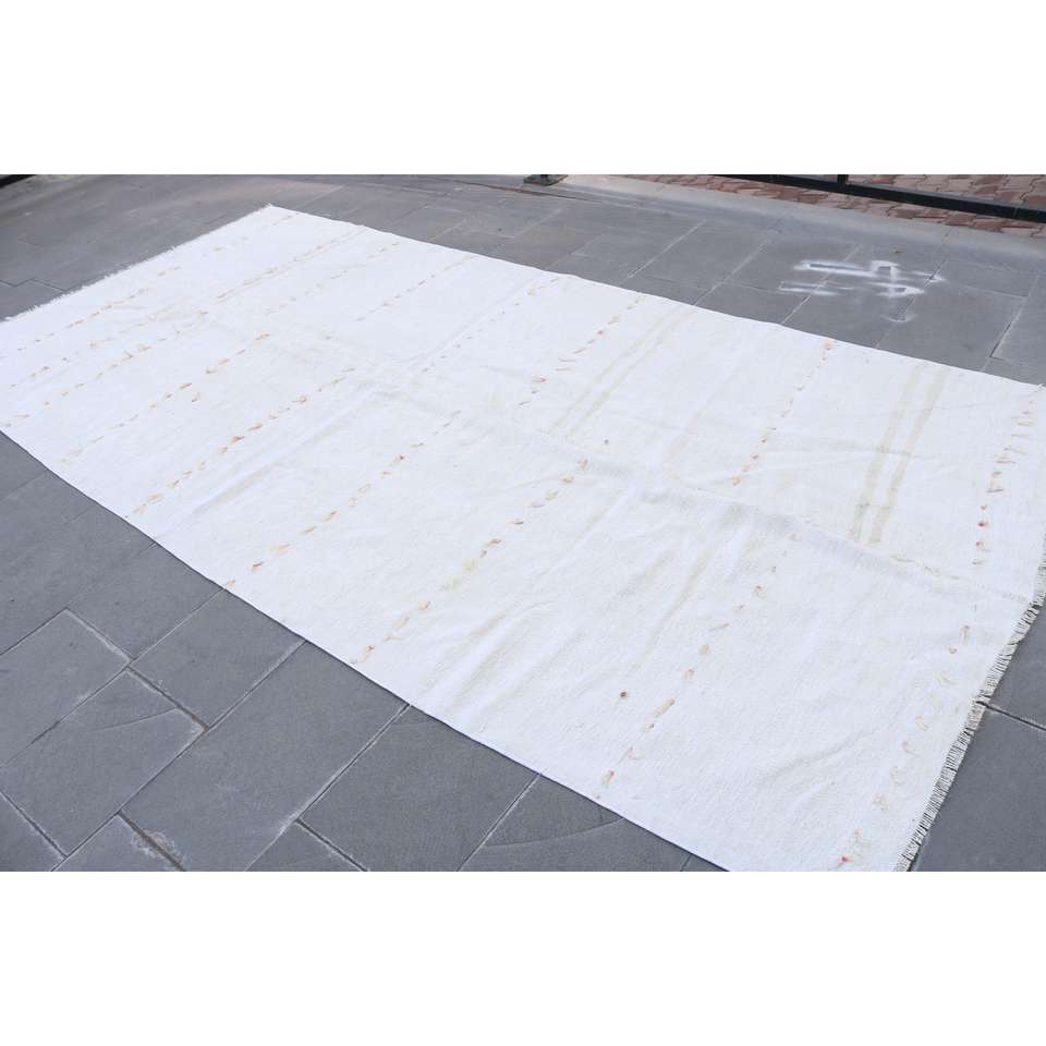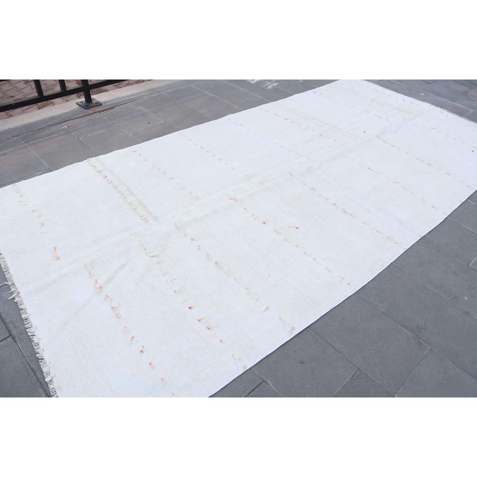 Alfombra Turca Vintage Grande de 5.5x11.6 pies, Alfombra de Lana Blanca