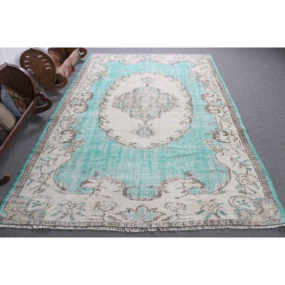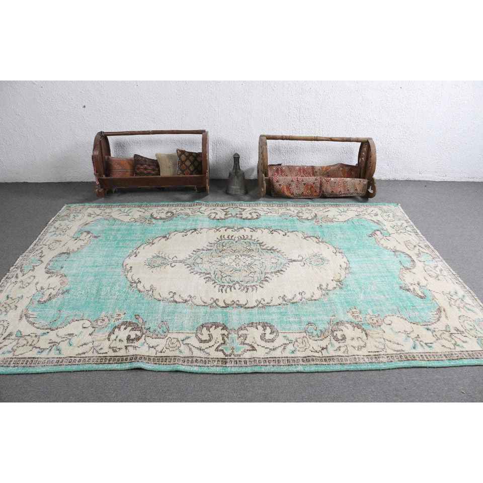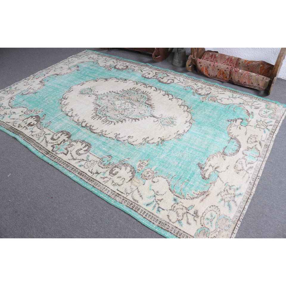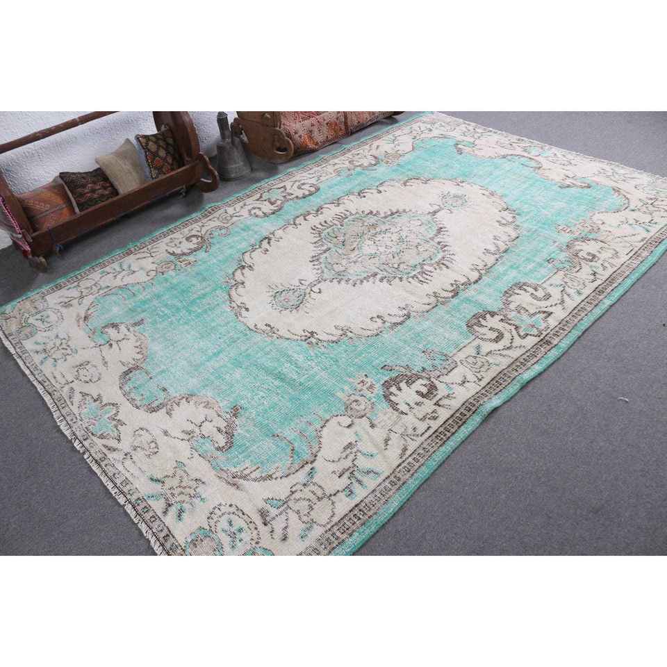 Alfombra Turca Vintage Grande de 6.1x9.2 pies (187x280 cm), Alfombra Oriental Azul