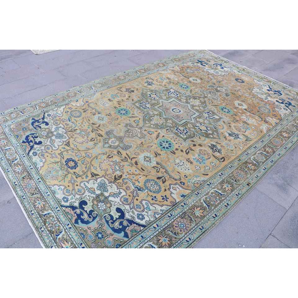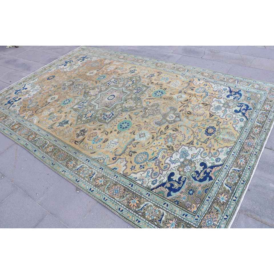 Alfombra Turca Vintage Grande de 6.2x9.6 pies, Alfombra de Lana Azul
