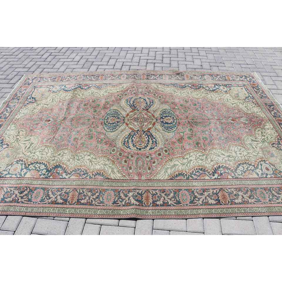 Alfombra Turca Vintage Grande de 6.4x9.4 pies, Alfombra de Lana Azul