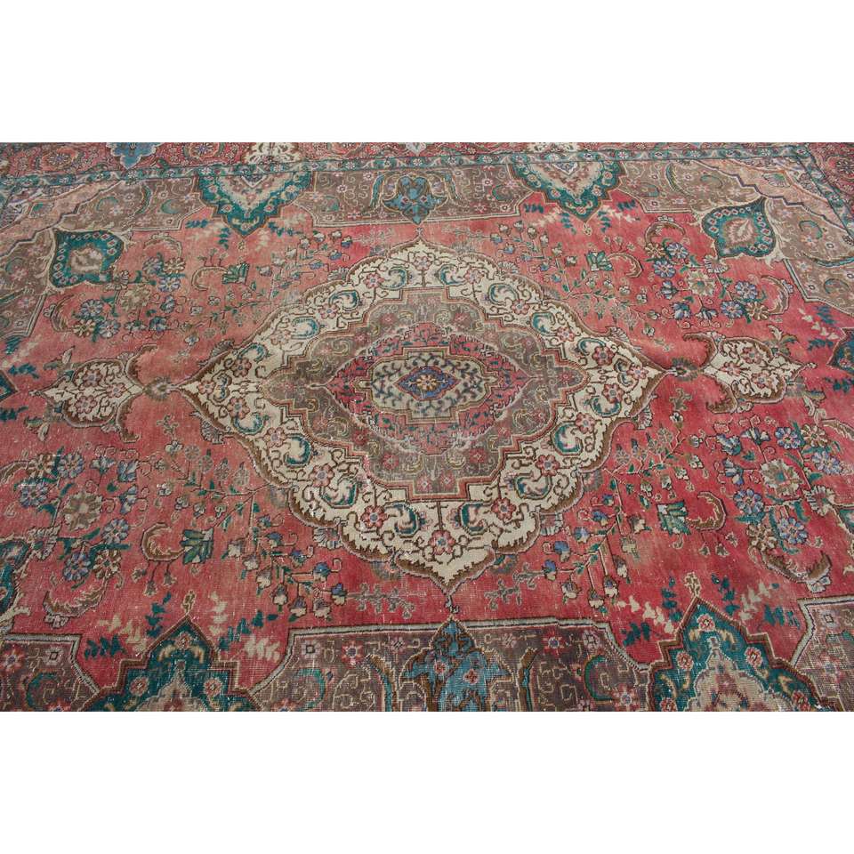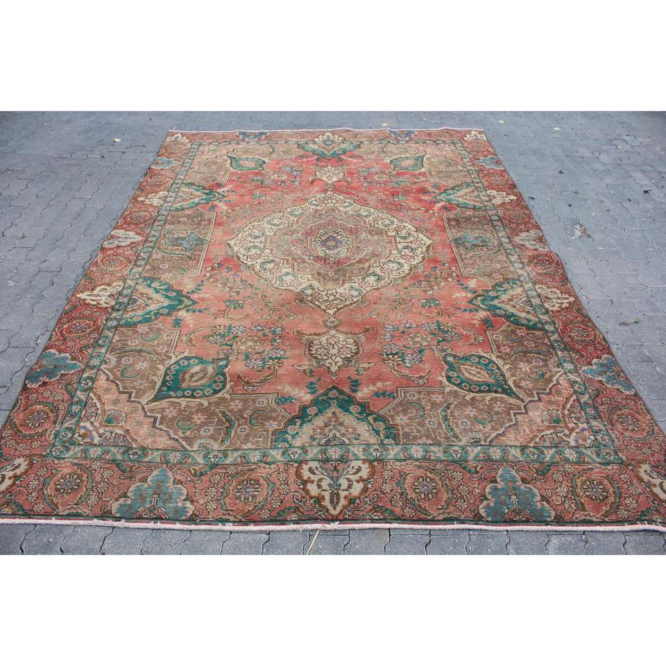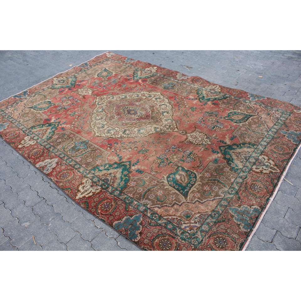 Alfombra Turca Vintage Extra Grande de 7.2x10.1 pies (220x308 cm), Alfombra Roja Ikat