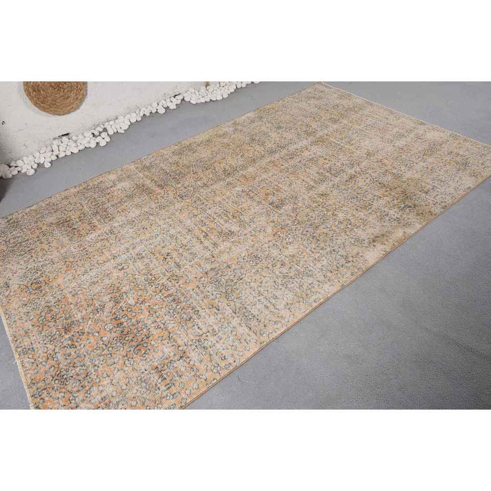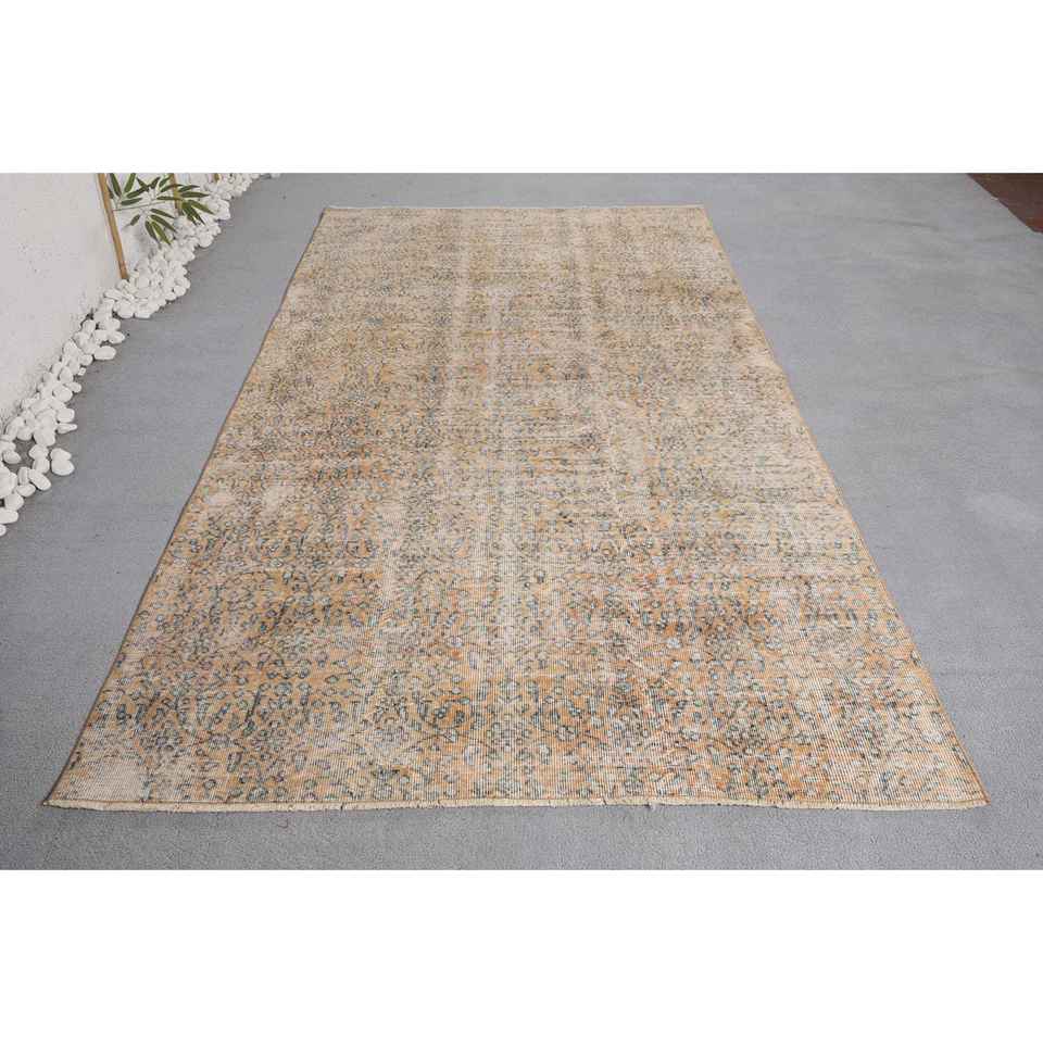 Alfombra tradicional ecológica de lana con diseño de retazos turcos Vintage, Beige, azul, área grande, 5x8,3 pies, comedor rectangular mediano