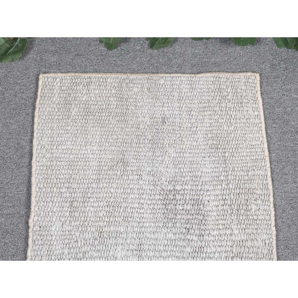 Alfombra Turca Vintage, Alfombra de Lana a Cuadros Gris y Blanca de 1.4x2.1 pies