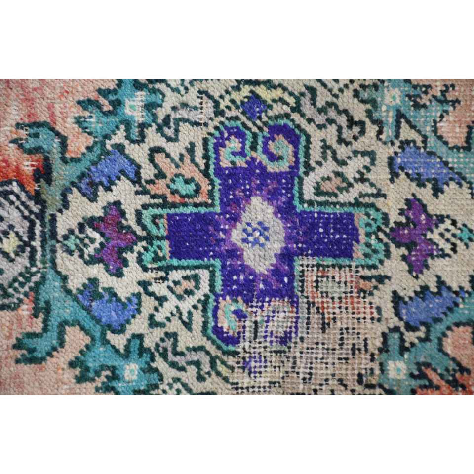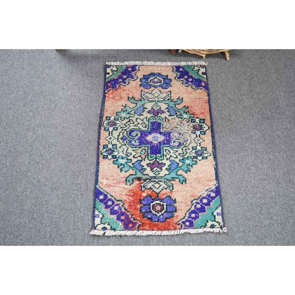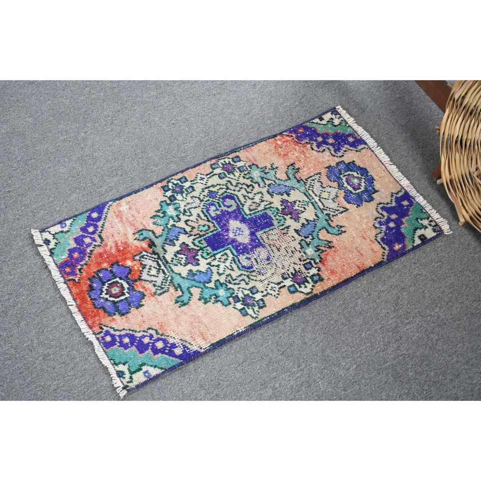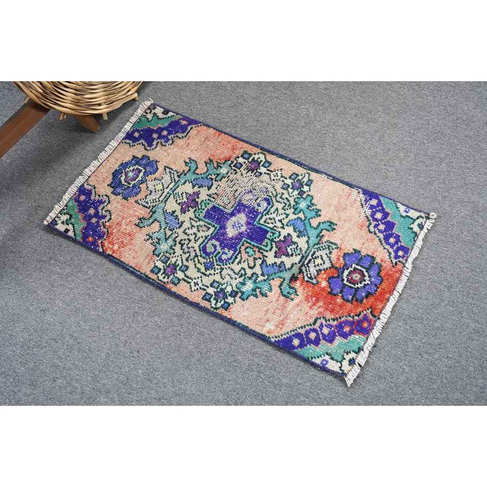Alfombra Turca Vintage de Lana Azul, 1.4x2.5 pies (42x76 cm)