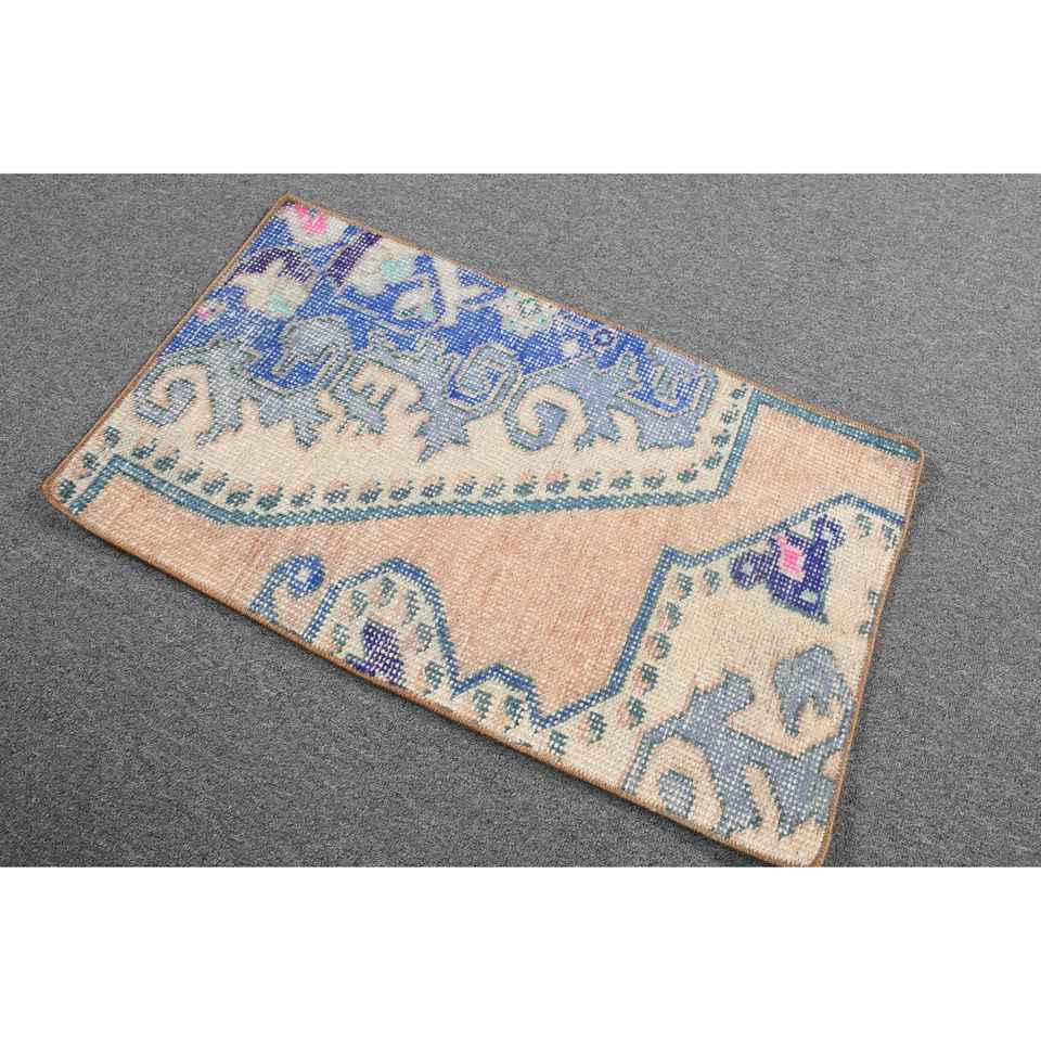 Alfombra Turca Vintage de 1.5x2.5 pies, Alfombra Pequeña de Lana Marroquí Azul
