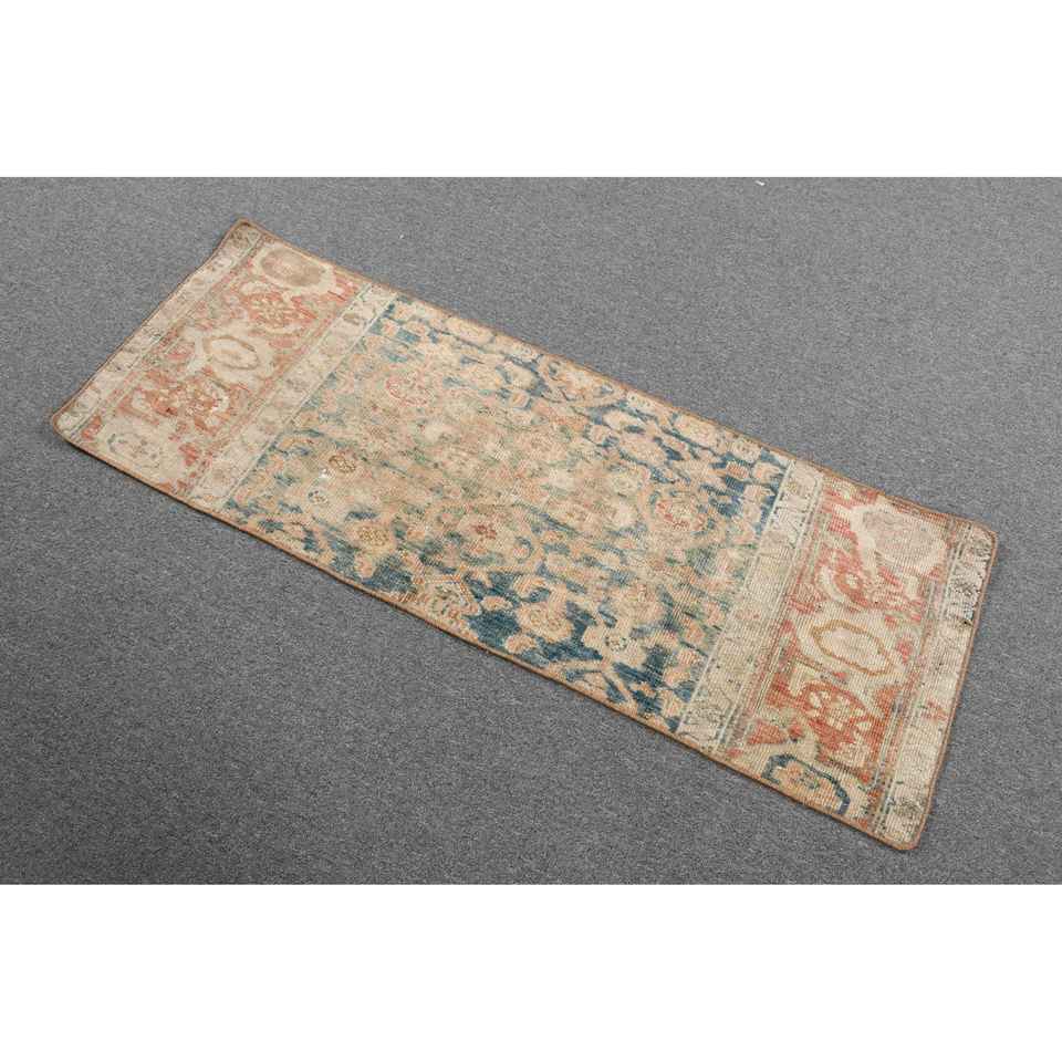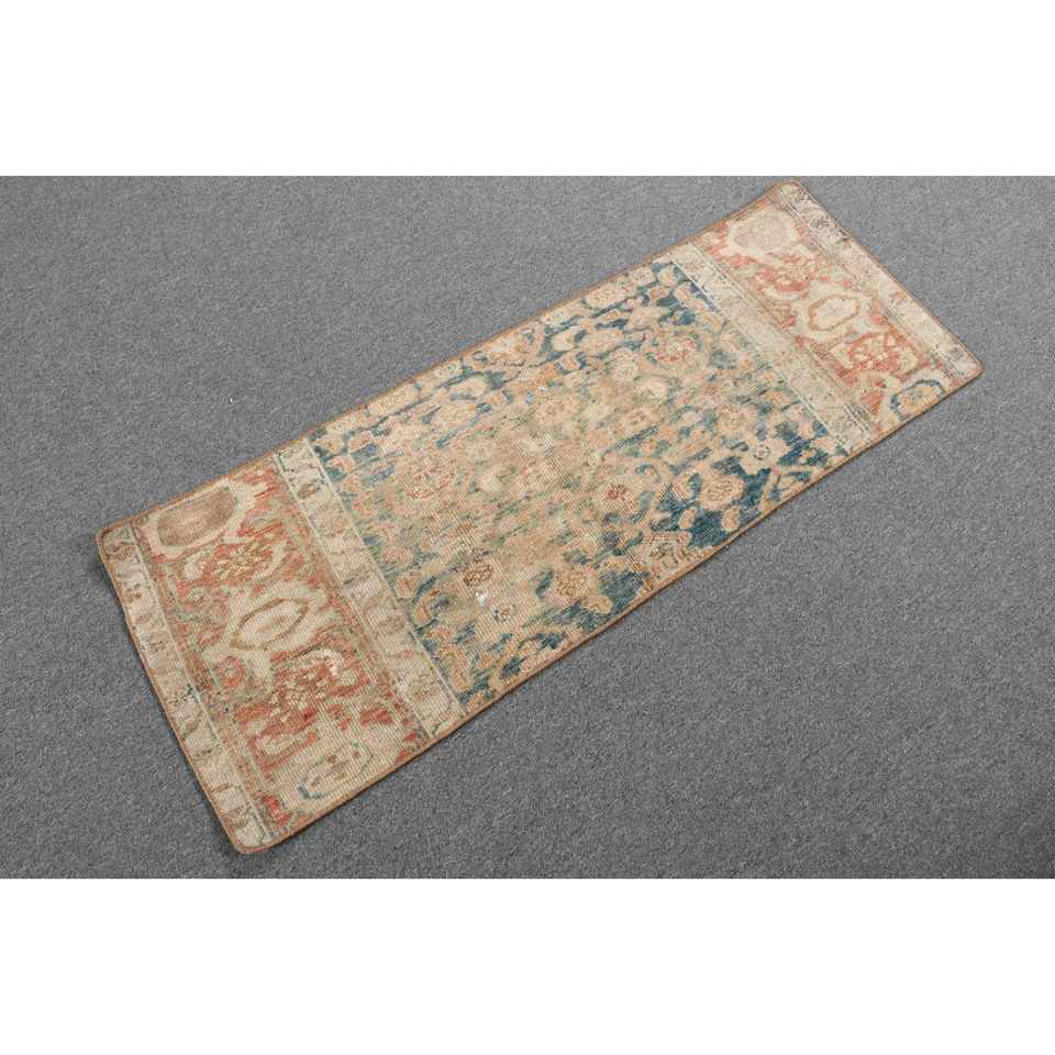 Alfombra Turca Vintage de 1.6x4.4 pies, Alfombra Persa Azul