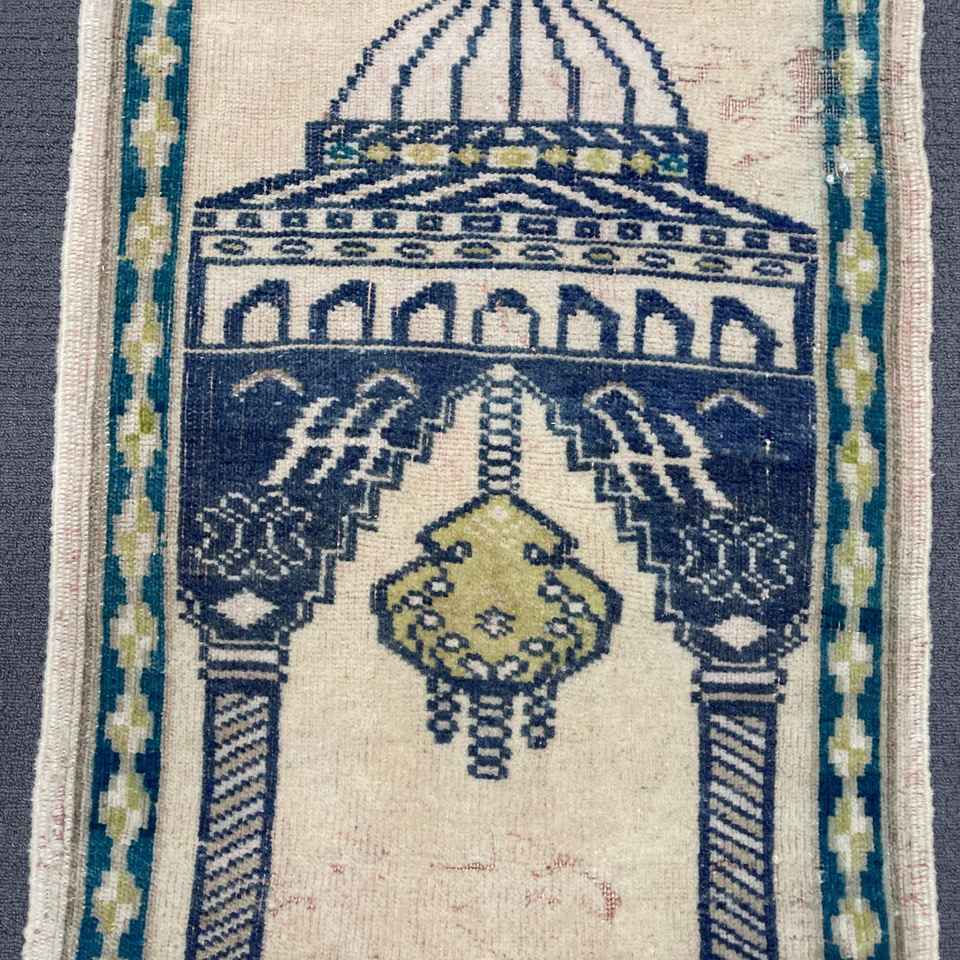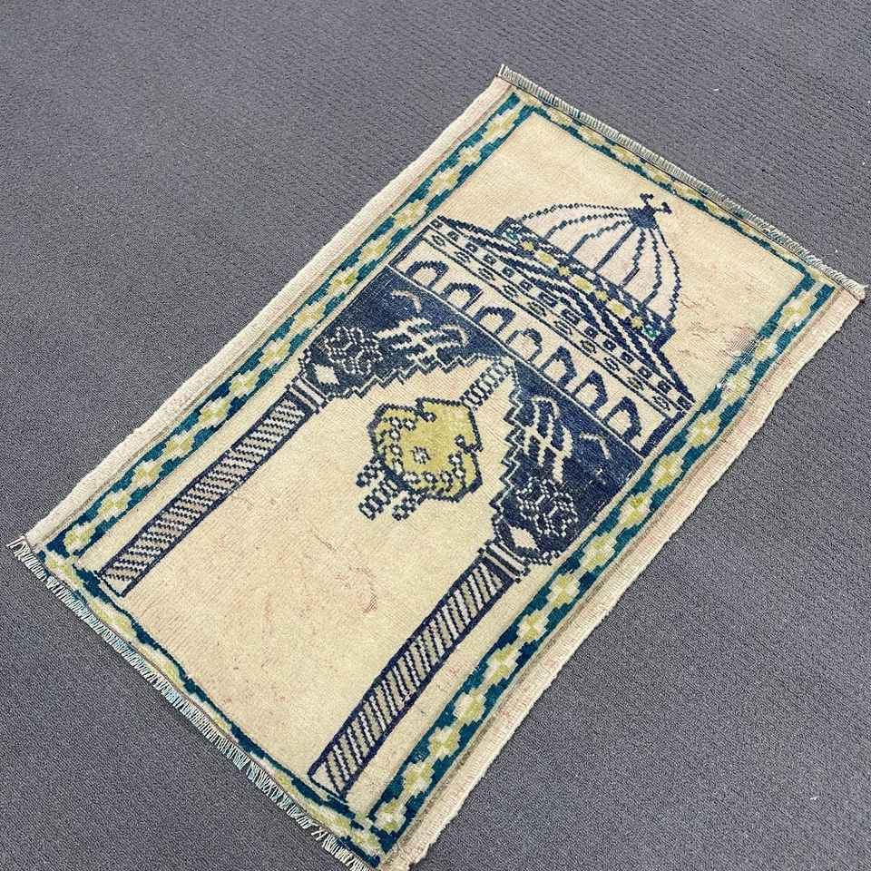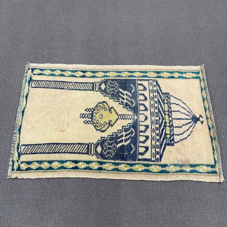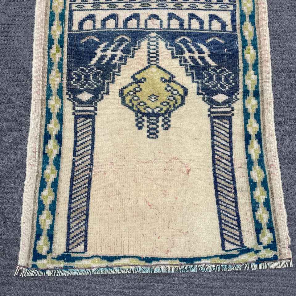 Alfombra Turca Vintage de Lana Azul, 1.8x2.9 pies (55x87 cm)
