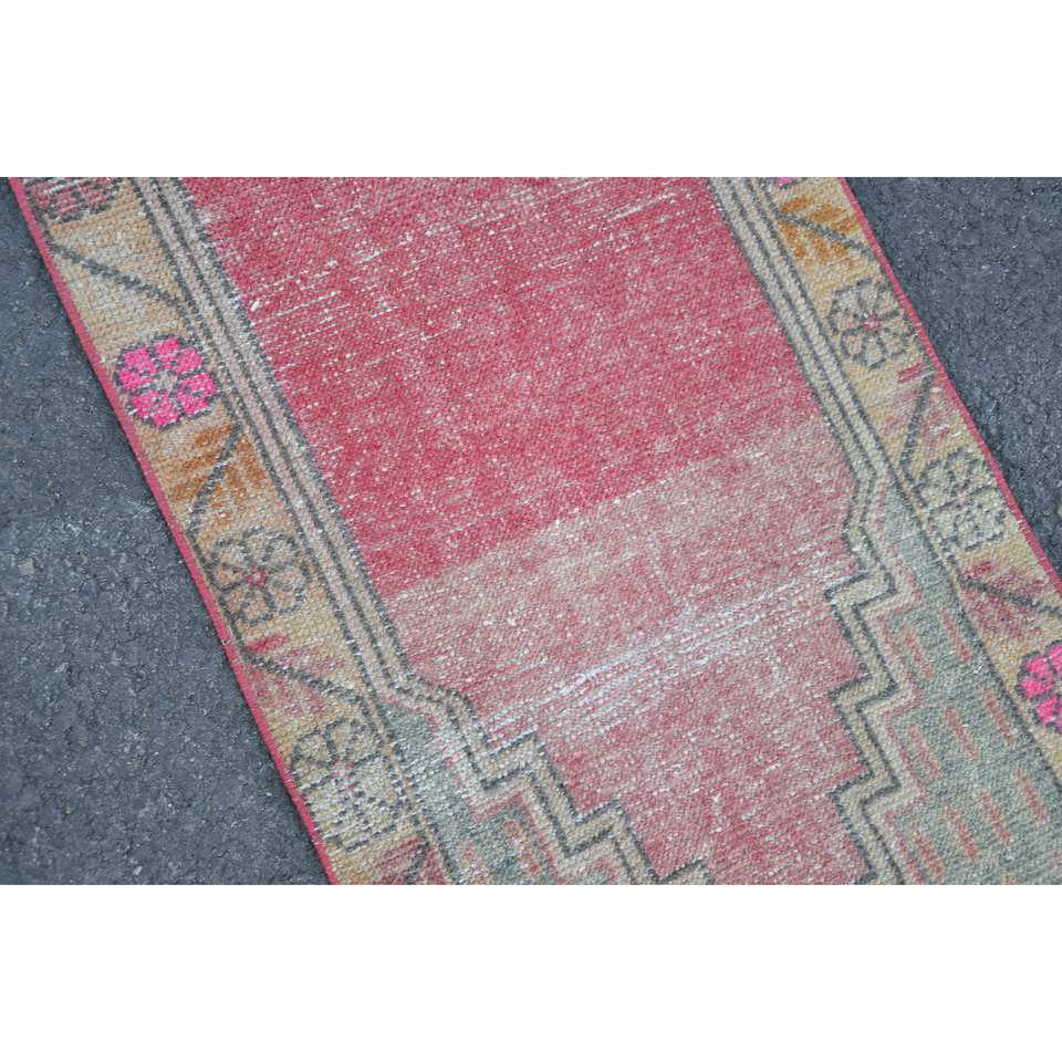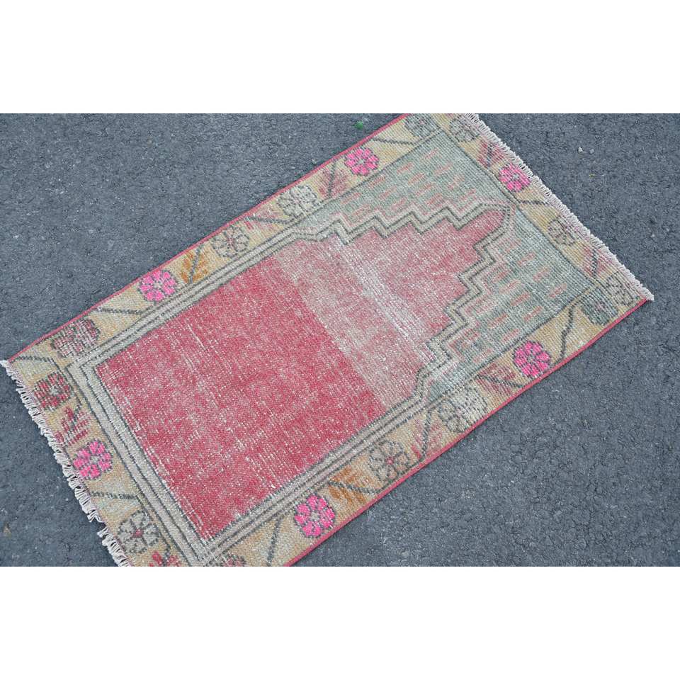 Alfombra turca vintage de lana roja y beige de 1,9x3,3 pies con diseño de retazos para pasillo o dormitorio con respaldo de látex