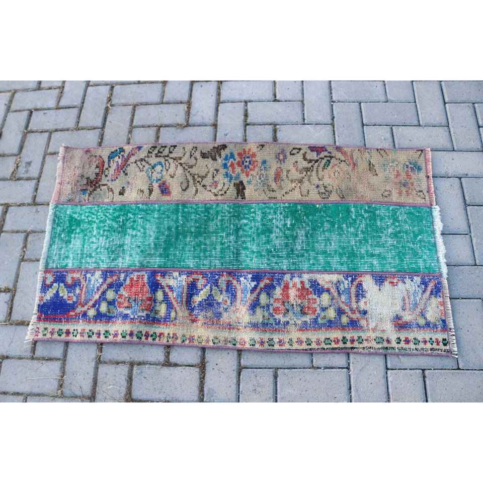 Alfombra Turca Vintage, Alfombra de 2.2x4 pies, Alfombra de Lana a Rayas Azul Verde